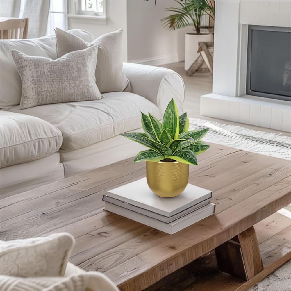 • Perfect Size: Faux snake plant in gold metal pots total height: 9", gold pot: 2.5 "W x 3.7 "H; Please read the dimensions carefully. Succulent agave plants artificial will easily catch you eyes, bring your home a vibrant sense of greenery