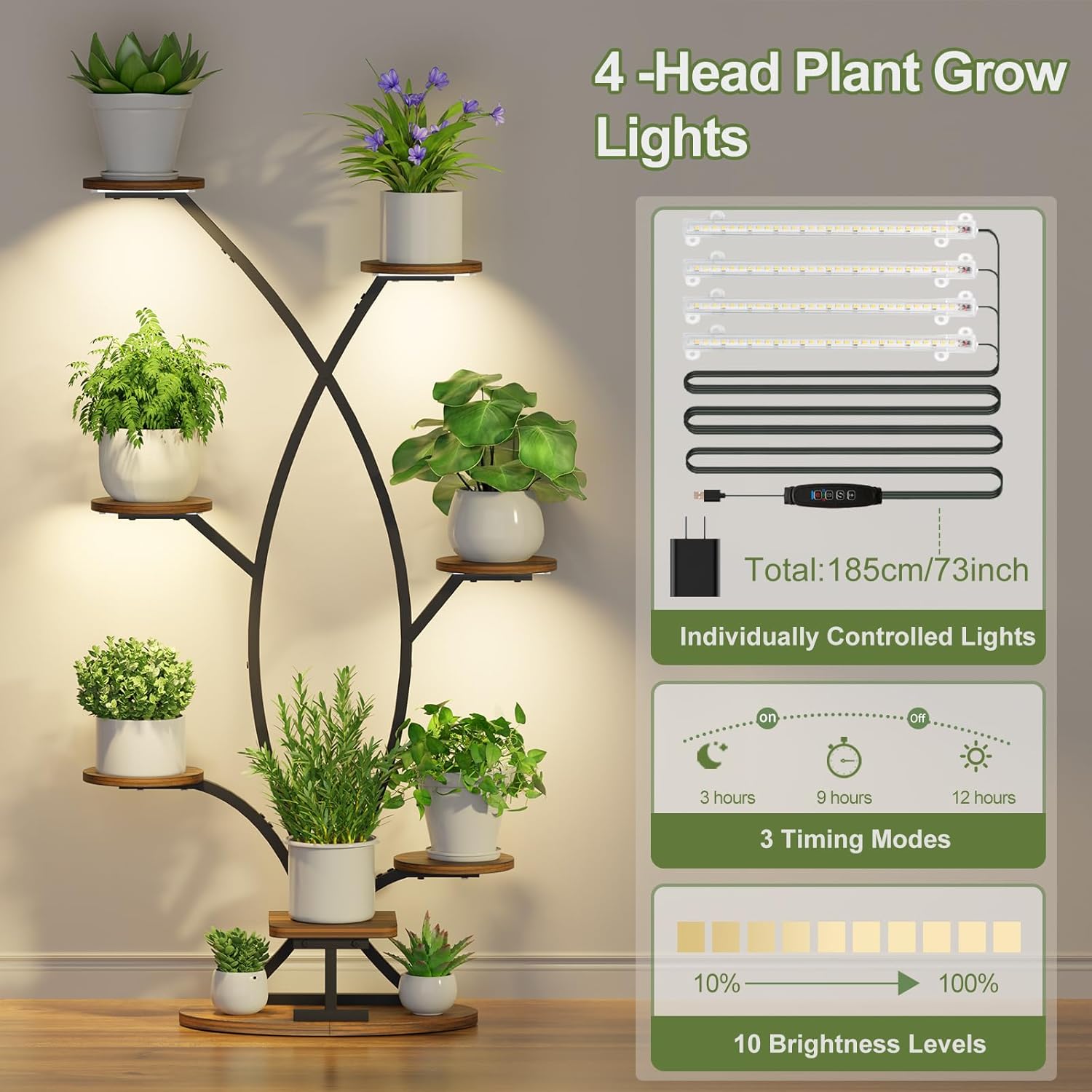 • [Full Spectrum Grow Light with Timer & Modes] This plant stand with grow light features full-spectrum LEDs with adjustable brightness, 3 color settings, and a smart timer, ensuring your plants get sufficient light in every season—even without window sunlight.