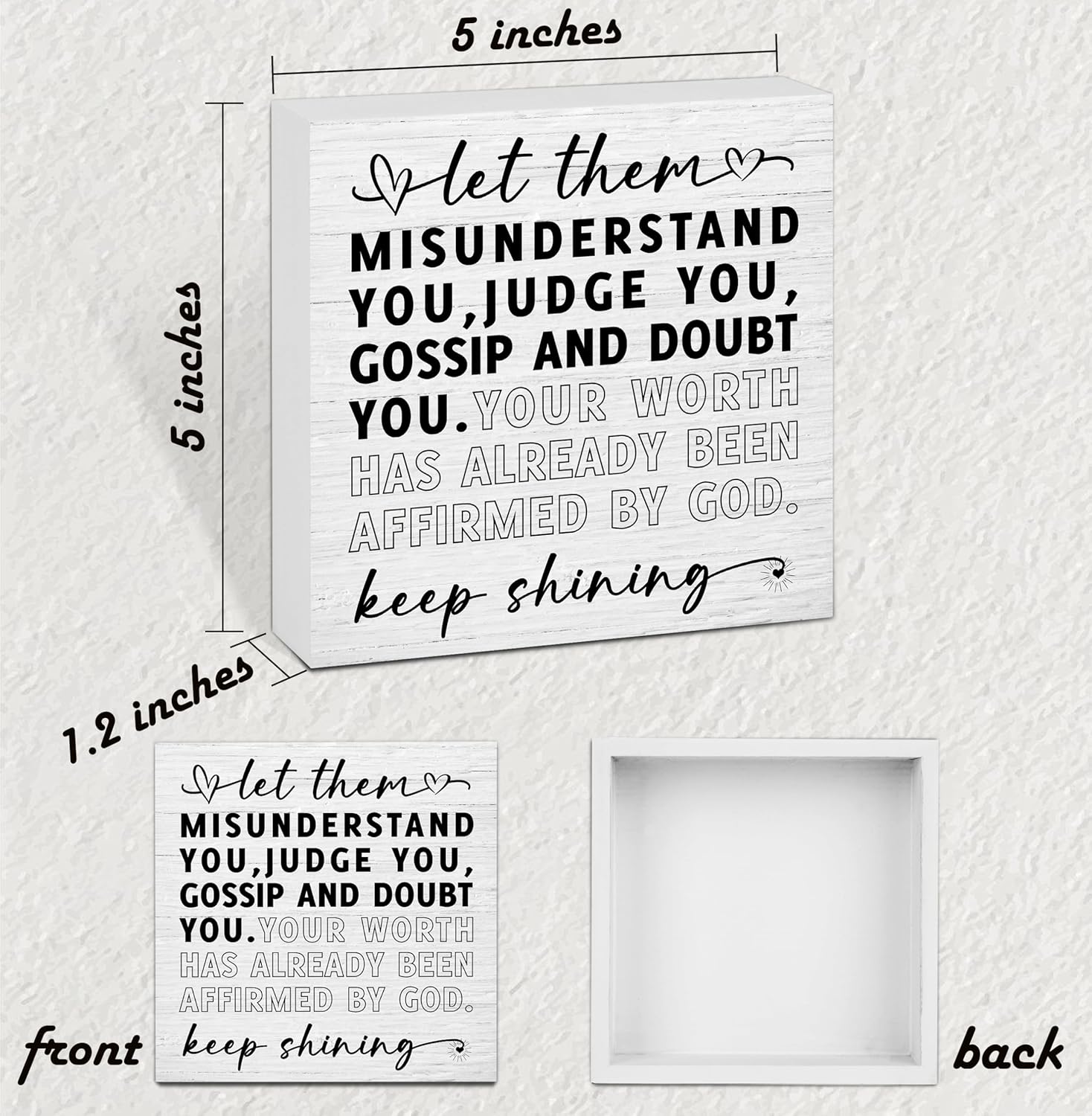 • Size: The size of Let Them wooden box sign is 5 x 5 inches, 1.2 inches thick.