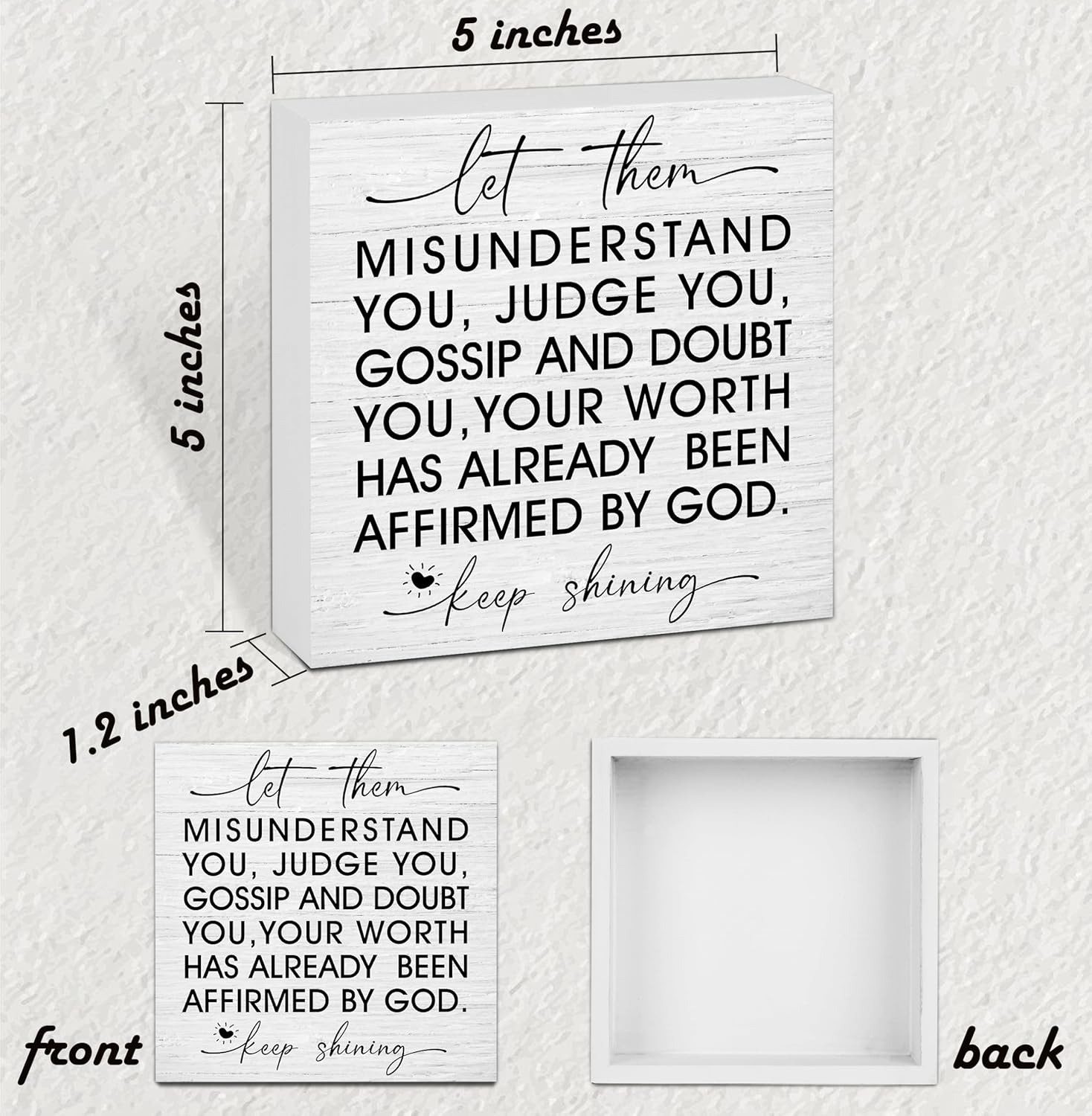 Let Them Wooden Sign, Desk Decorations For Women Office, 5x5 Inch Farmhouse Funny Office Decor Wood Box Sign, Desk Shelf Cubicle Accessories, Appreciation Gifts for Coworkers Boss, 12