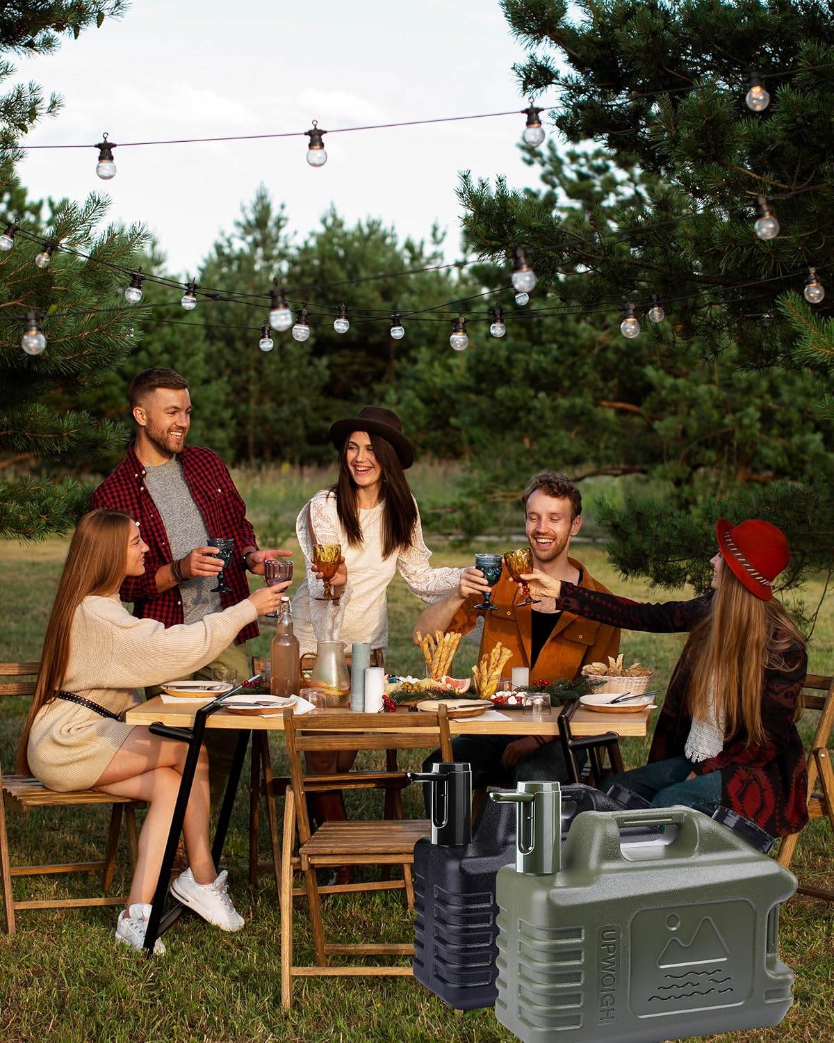 UPWOIGH 5 Gallon Water Jug with Automatic Touch Control Pump (1 Pump Included), Truly Leak-Proof BPA-Free Water Container with Spigot, Type-C Rechargeable Military Green Water Pump for Camping Hiking