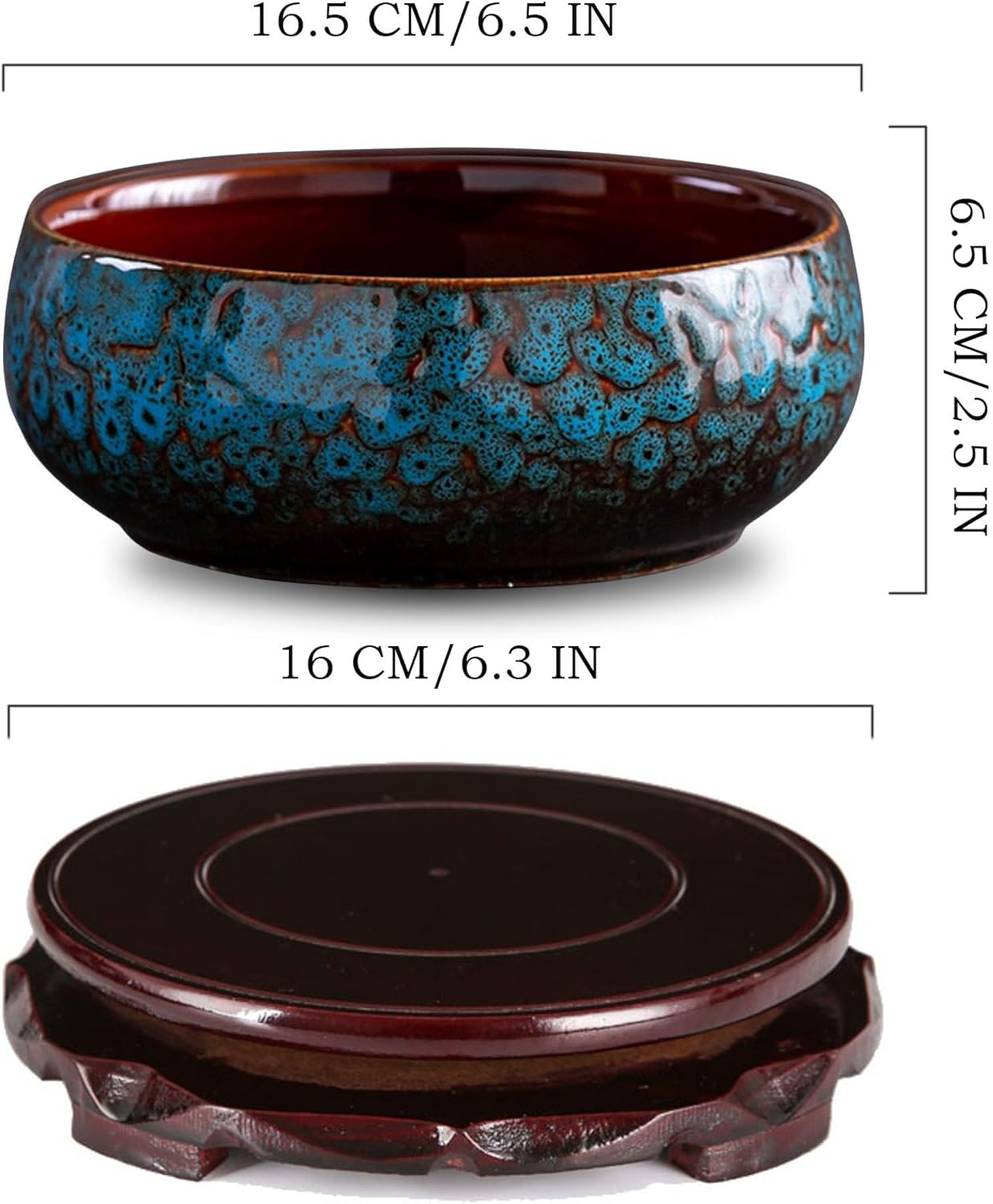 • 【Flower Pot Size】Package includes: 1 PCS succulent pots without potted plants, the dimensions are: 6.5 inches in diameter x 2.5 inches in height, 1 360° rotating flower pot round base, the dimensions are: 6.2 inches in diameter x 1.2 inches in height, the rotating base can also be used to place favorite things at will, showing different temperaments.