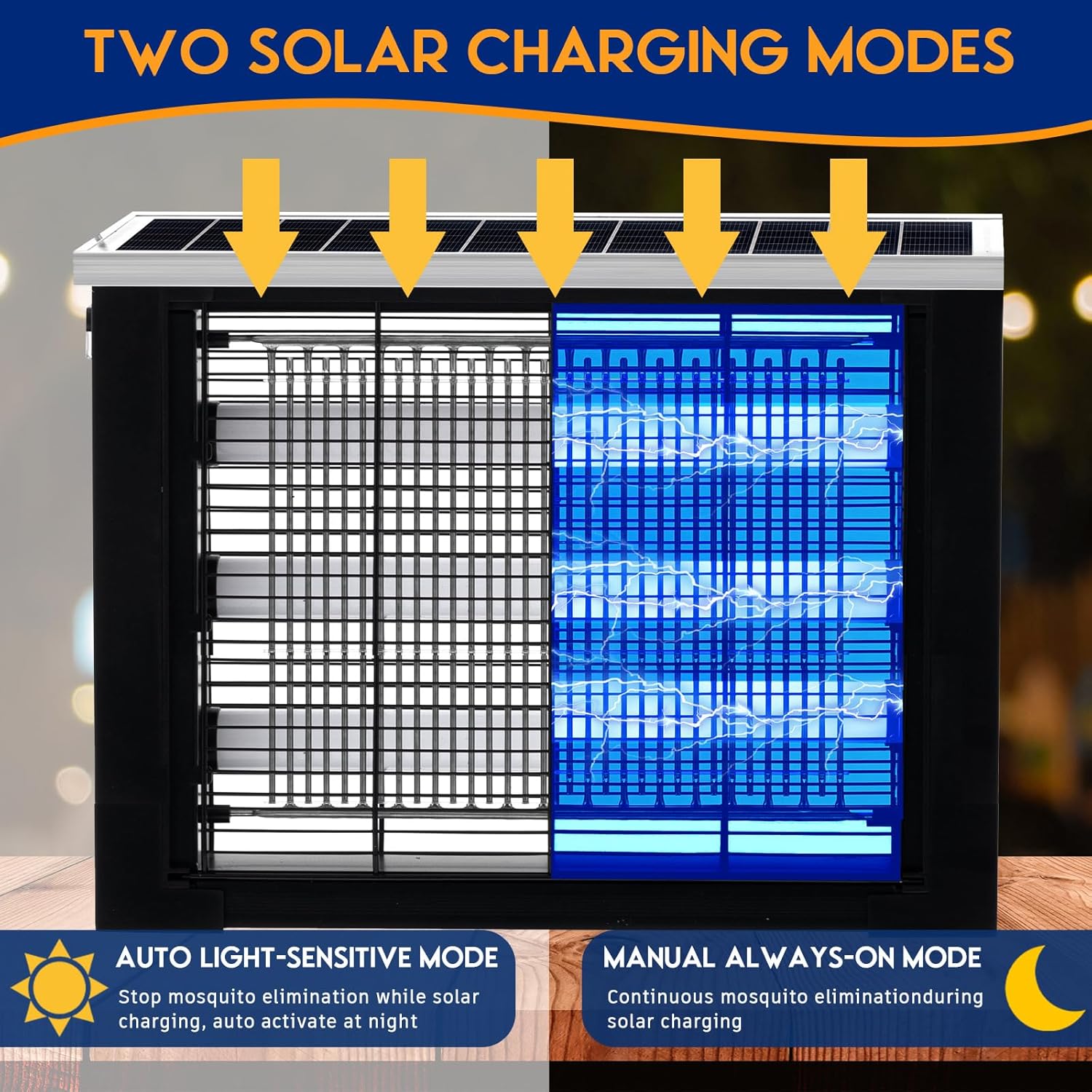 • Easy to Use and Low Maintenance: the solar powered mosquito zapper operates with ease and minimal maintenance; It includes 2 grounding brackets, allowing for easy installation in grassy areas; Alternatively, it can be hung from any hook or placed on a countertop; With its sturdy plastic structure and IPX6 waterproof design, it can endure wind, rain, and prevent rusting, ensuring a longer lifespan