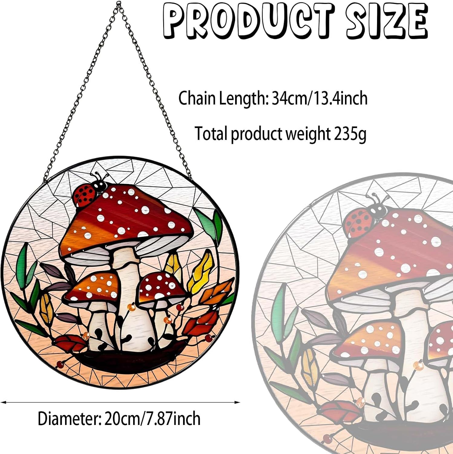 • 【Exquisite Craftsmanship】The beauty of stained glass suncatcher(20*20cm)is not comparable to plastic acrylic. Excellent craftsmen make suncatchers for windows hanging by hand, which not only makes each stained glass look classic and exquisite, but also vividly outlines different designs through delicate brushstrokes, showing the unique texture and beauty of glass materials