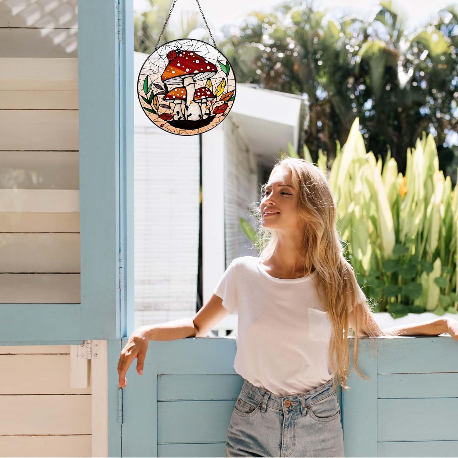 • 【Stained Glass Window Hanging】The colored glass sun catcher can effectively capture sunlight with its excellent light transmittance, and transform the light into colorful light and shadow effects indoors.Sun catchers indoor window can not only add sunshine color to the family, but also can be used as a glass decoration to make your home more beautiful