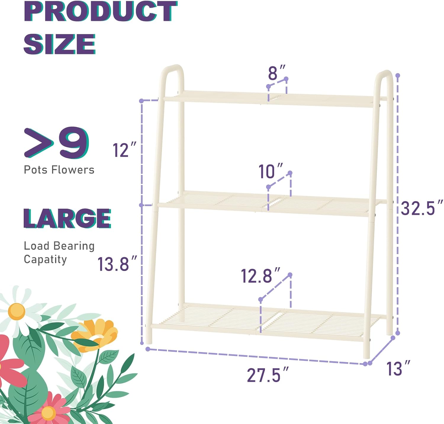 • MULTI-TIER DESIGN: Features 3 spacious shelves that rise in height to hold over 9 flower pots, making efficient use of space and great for placing a variety of plants in corners or along walls