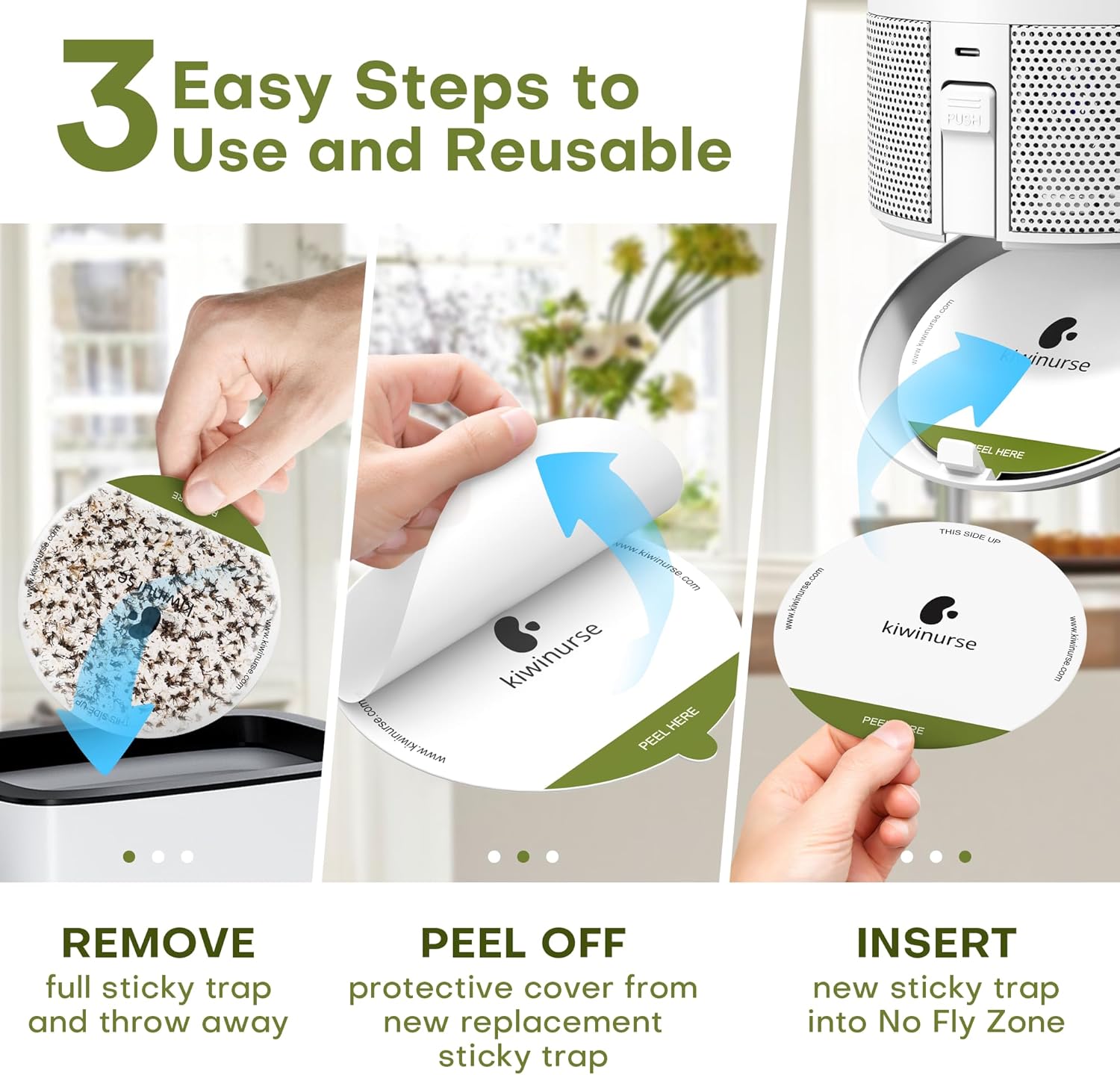 • QUADRUPLE-ACTION TRAPPING - A bait, UV light, whisper-quiet fan, and Ultra glue board work together to eliminate flying insects. The fruit fly traps for indoors emit 365 plus 395nm wavelength light and CO2, attracting fruit flies, gnats, mosquitoes, and other small flying insects (not effective on house flies). For best result, please use at night and in the dark