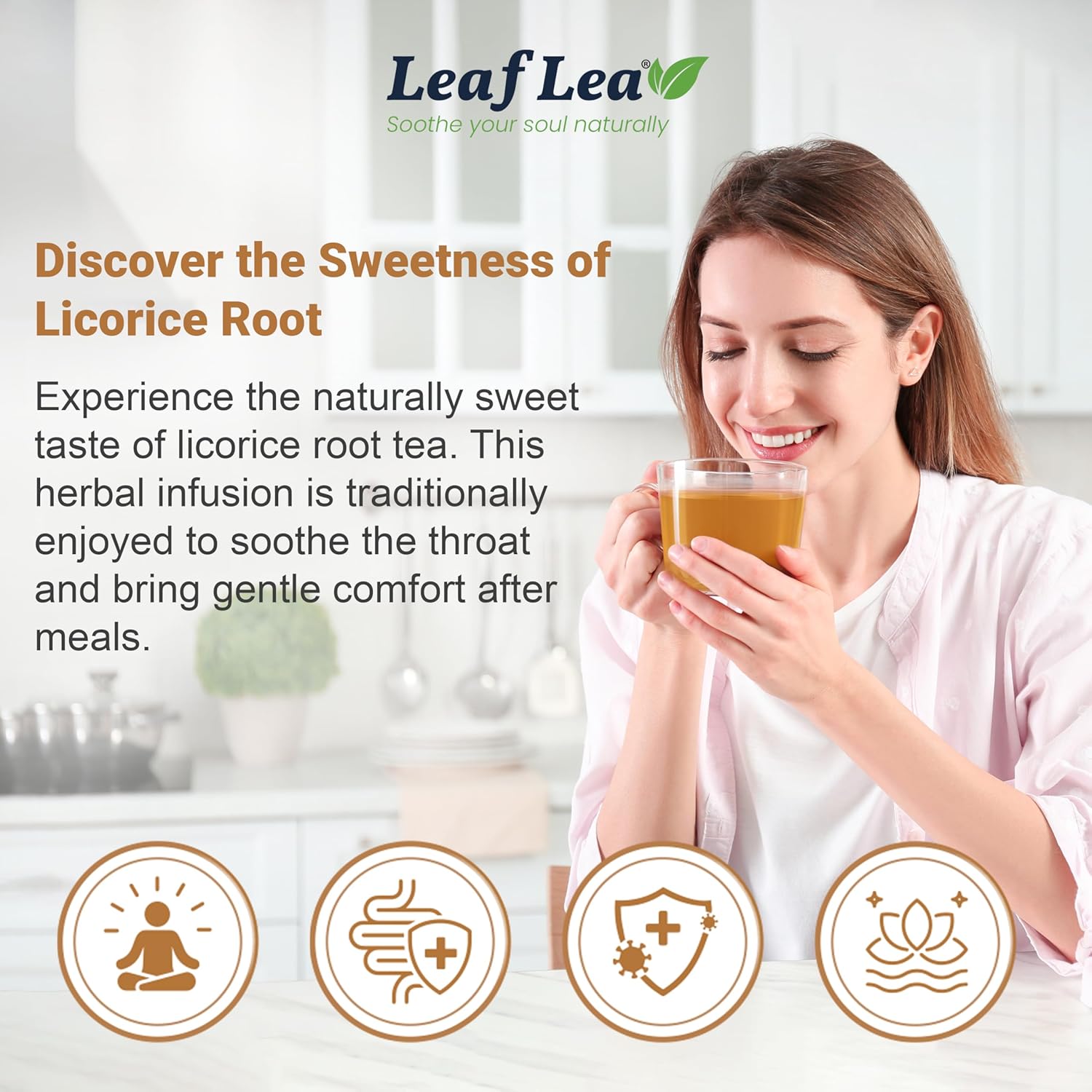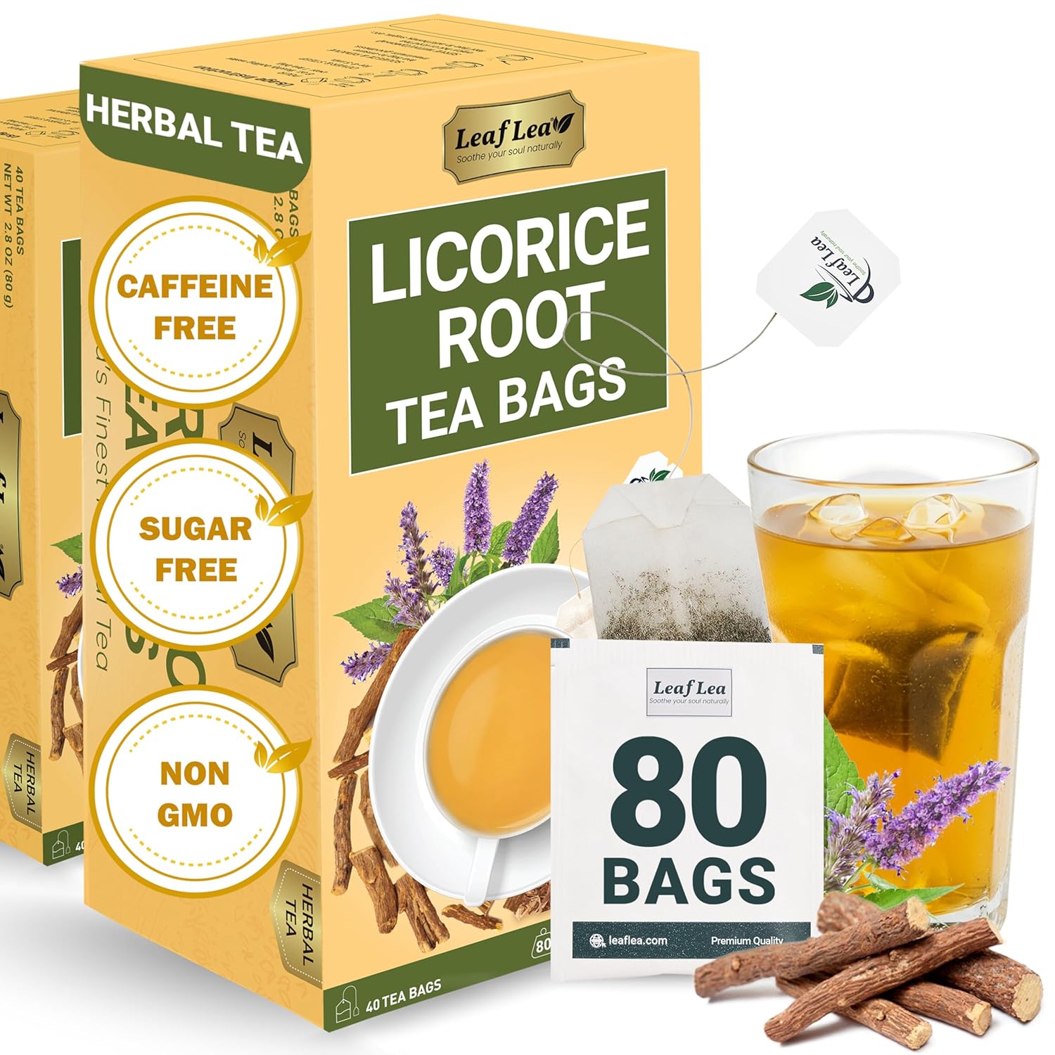 LeafLea 80 Licorice Root Tea Bags, Pure Licorice Spice Tea, Naturally Sweet, Te De Regaliz Herbal Gently Supports Relaxation and Digestive Comfort, Nutrient-Rich, Vegan, Sugar- free, Caffeine Free