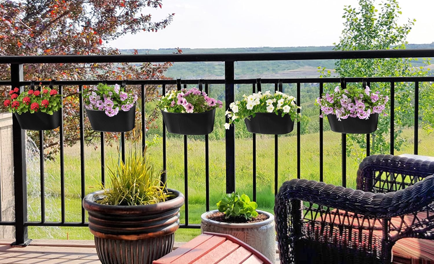 • Detachable Hooks and Drain Holes: Balcony rail planter comes with detachable hooks to attach to the fence or wherever you want to put. You can remove the hooks and they become regular planters. Design with drainage holes at the bottom. This feature guarantees that your plants won't be overwatered, promoting their health and longevity.