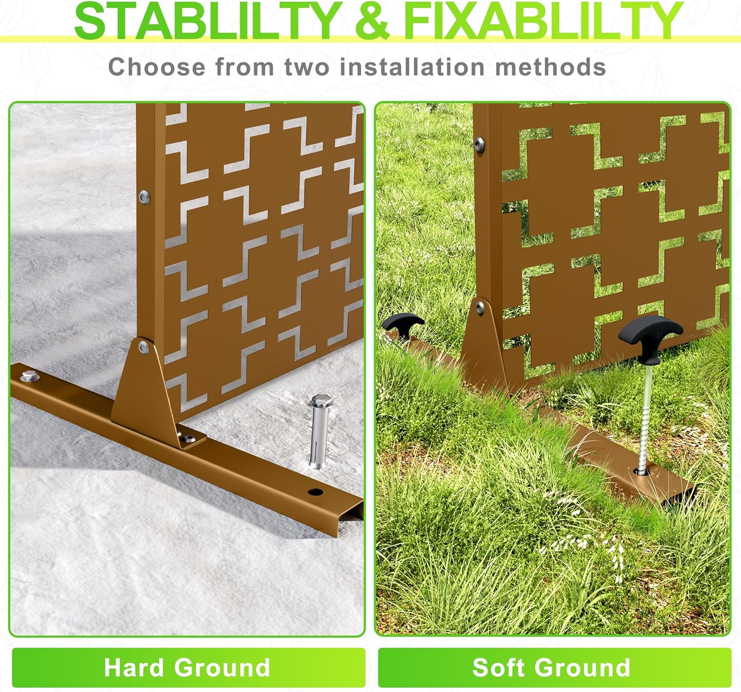 • 【Robust Metal Build】The metal privacy screen boasts a robust construction crafted from high-quality galvanized steel. Designed to endure the rigors of outdoor elements, its sturdy build guarantees prolonged durability.