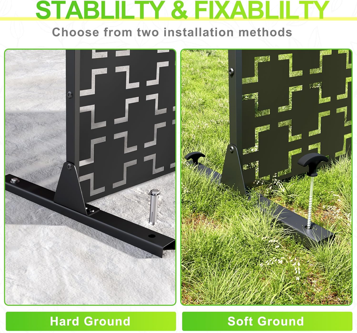 • 【Robust Metal Build】The metal privacy screen boasts a robust construction crafted from high-quality galvanized steel. Designed to endure the rigors of outdoor elements, its sturdy build guarantees prolonged durability.