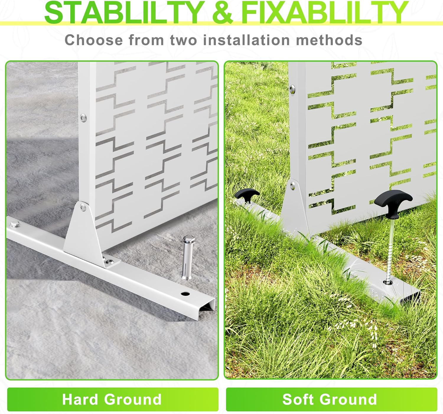 • 【Robust Metal Build】The metal privacy screen boasts a robust construction crafted from high-quality galvanized steel. Designed to endure the rigors of outdoor elements, its sturdy build guarantees prolonged durability.
