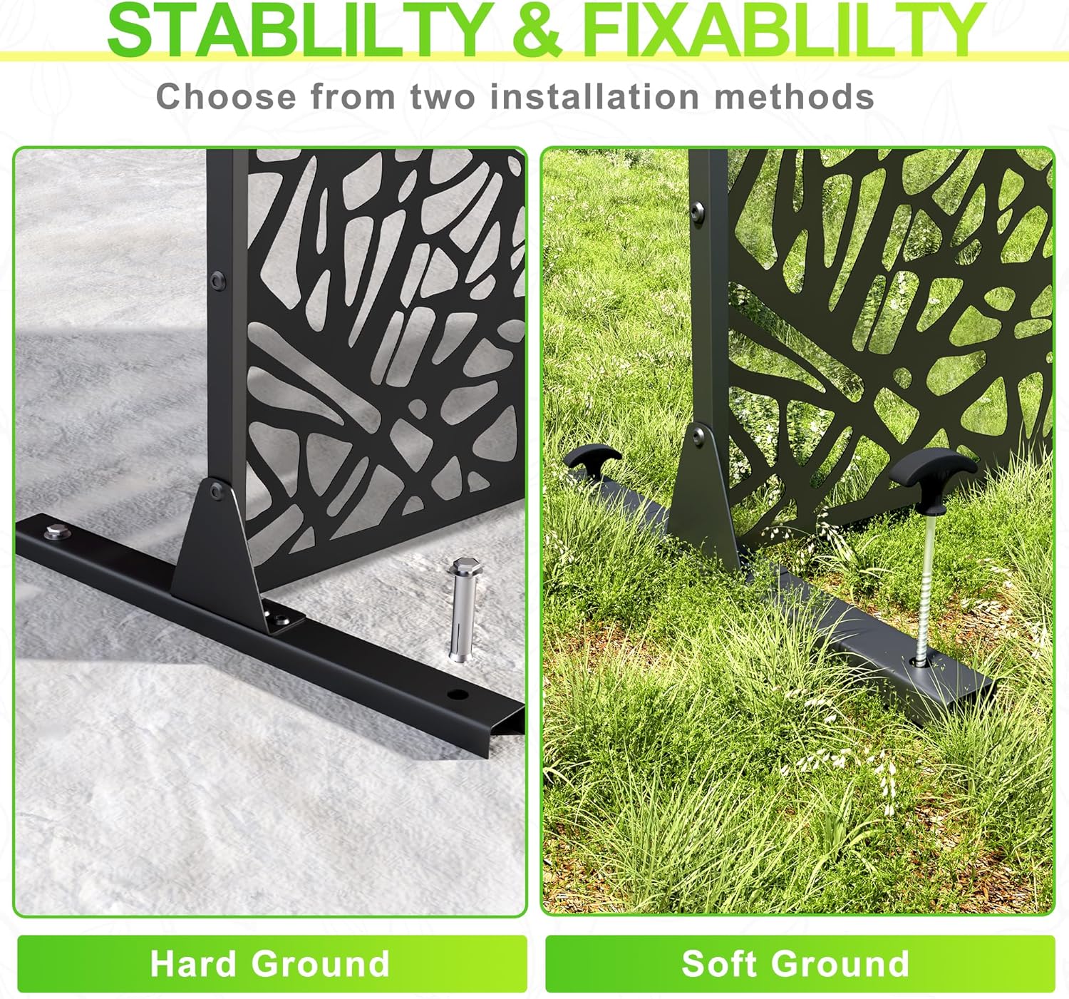 • 【Robust Metal Build】The metal privacy screen boasts a robust construction crafted from high-quality galvanized steel. Designed to endure the rigors of outdoor elements, its sturdy build guarantees prolonged durability.