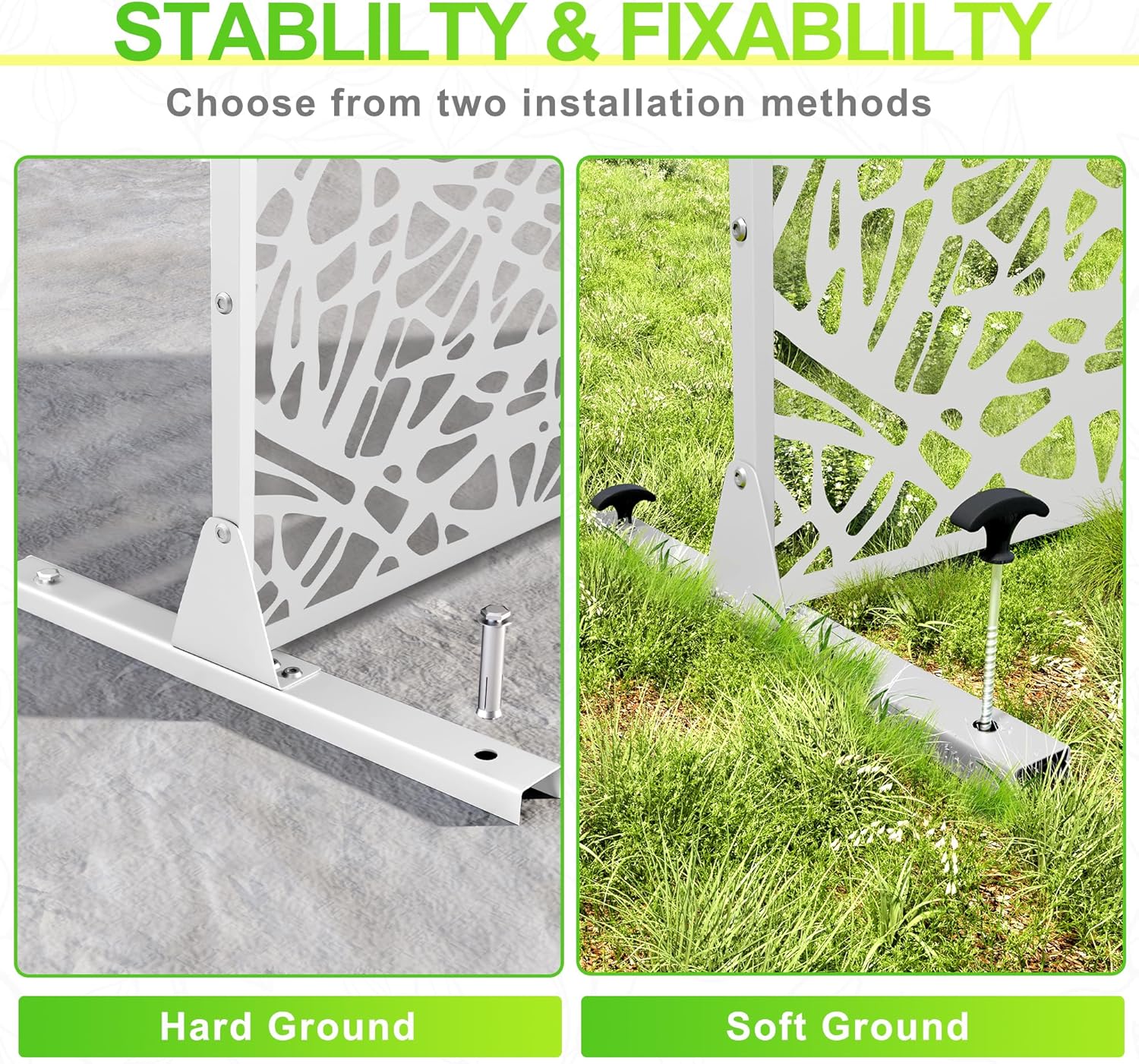 • 【Robust Metal Build】The metal privacy screen boasts a robust construction crafted from high-quality galvanized steel. Designed to endure the rigors of outdoor elements, its sturdy build guarantees prolonged durability.