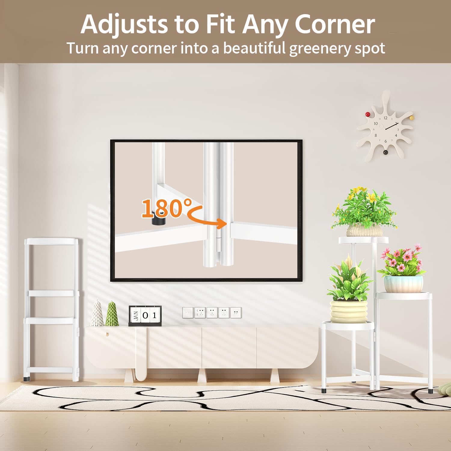 • 【Adjusts to Fit Any Corner】Struggling with awkward corners or tight spaces? Unlike rigid indoor plant stand that demand perfect square footage, our stand’s legs effortlessly rotate and adjust to your space’s unique shape—perfectly aligning with corners and uneven walls for a snug, balanced fit.