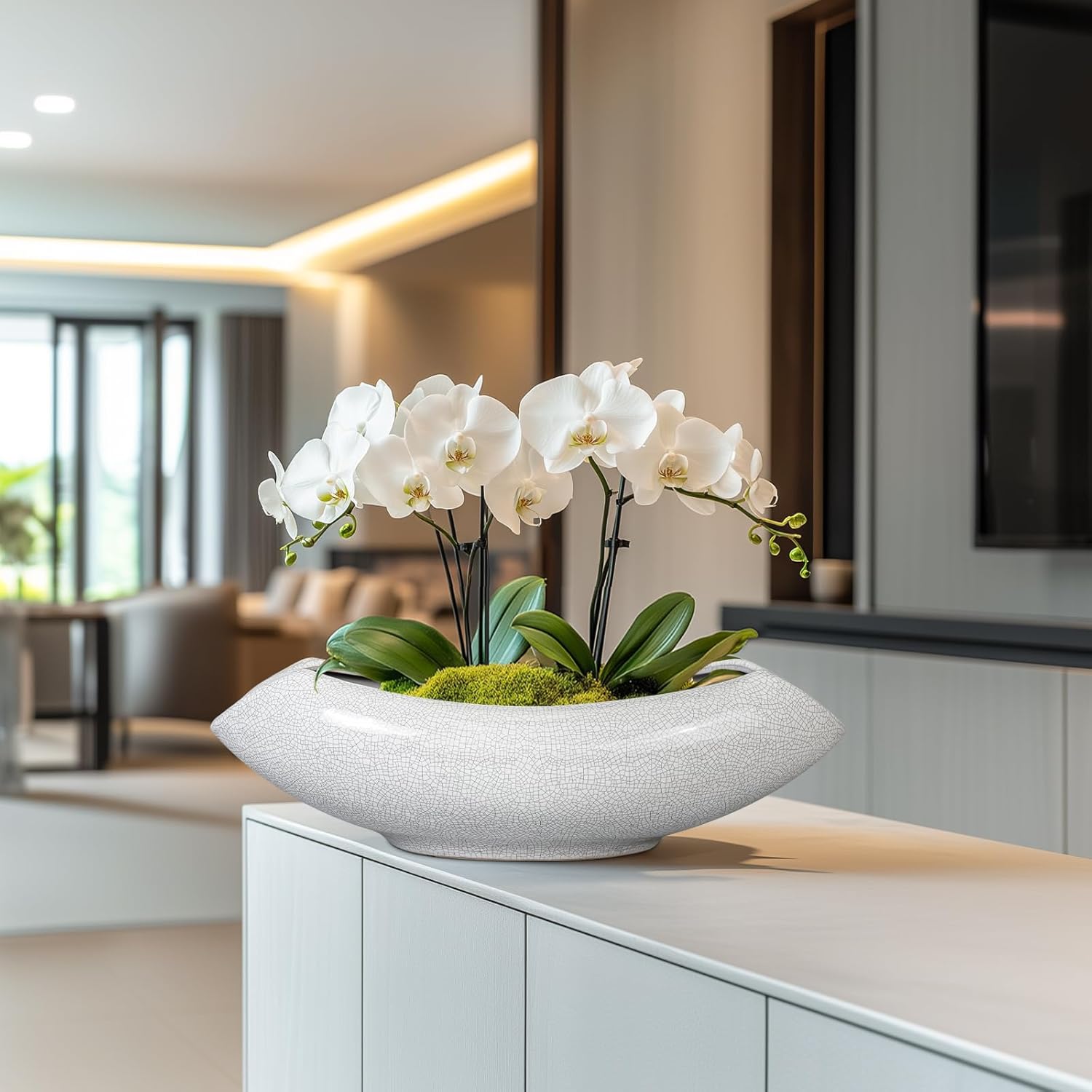 Ceramic Bonsai Tree Pot - 18 Inch Ceramic Pots for Plants, Large Succulent Planter with Drainage Hole for Indoor Outdoor, Unique Planters for Flower, Home Decor, Gardening Gifts, White-Black