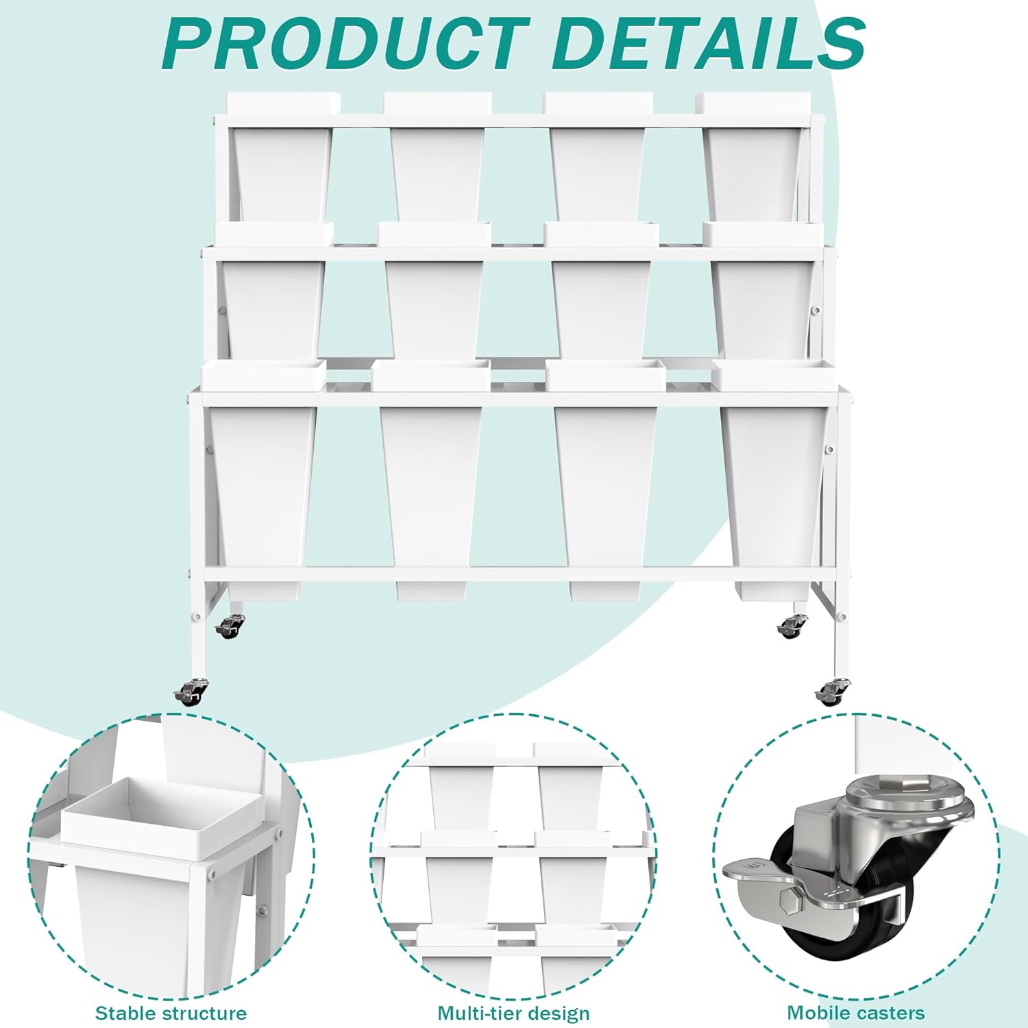 • Metal Flower Cart with Wheels: This metal plant stand is built for lasting durability, featuring robust weight capacity and rust resistance. The wheeled version offers effortless mobility and stable display with lockable smooth-rolling casters, allowing easy repositioning.