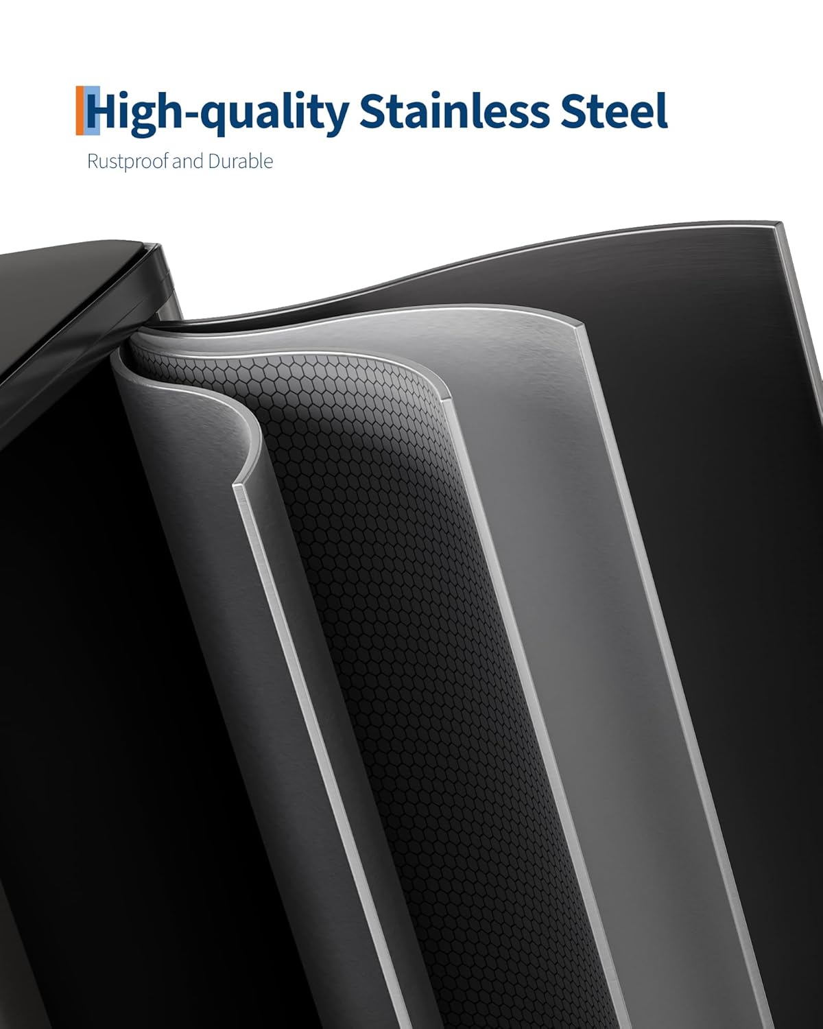 • [HIGH-QUALITY MATERIALS] – GarveeHome stainless steel trash can with lid is engineered for longevity. Its 410-grade ferritic stainless-steel shell delivers rustproof strength, scratch resistance and lasting luster. Two polypropylene inner buckets repel stains, odors and moisture. A thick ABS lid with stainless overlay resists dents; the industrial steel pedal endures 150,000+ steps and the one-piece ABS hinge survives over 300,000 open/close cycles
