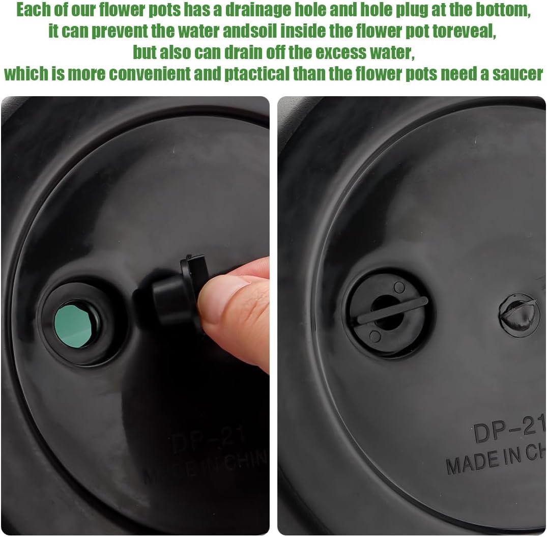 • Built-In Drainage System Pot: Each pot comes with pre-drilled drainage hole to prevent overwatering, along with hole plugs for flexibility. Perfect for indoor and outdoor small and medium size plants