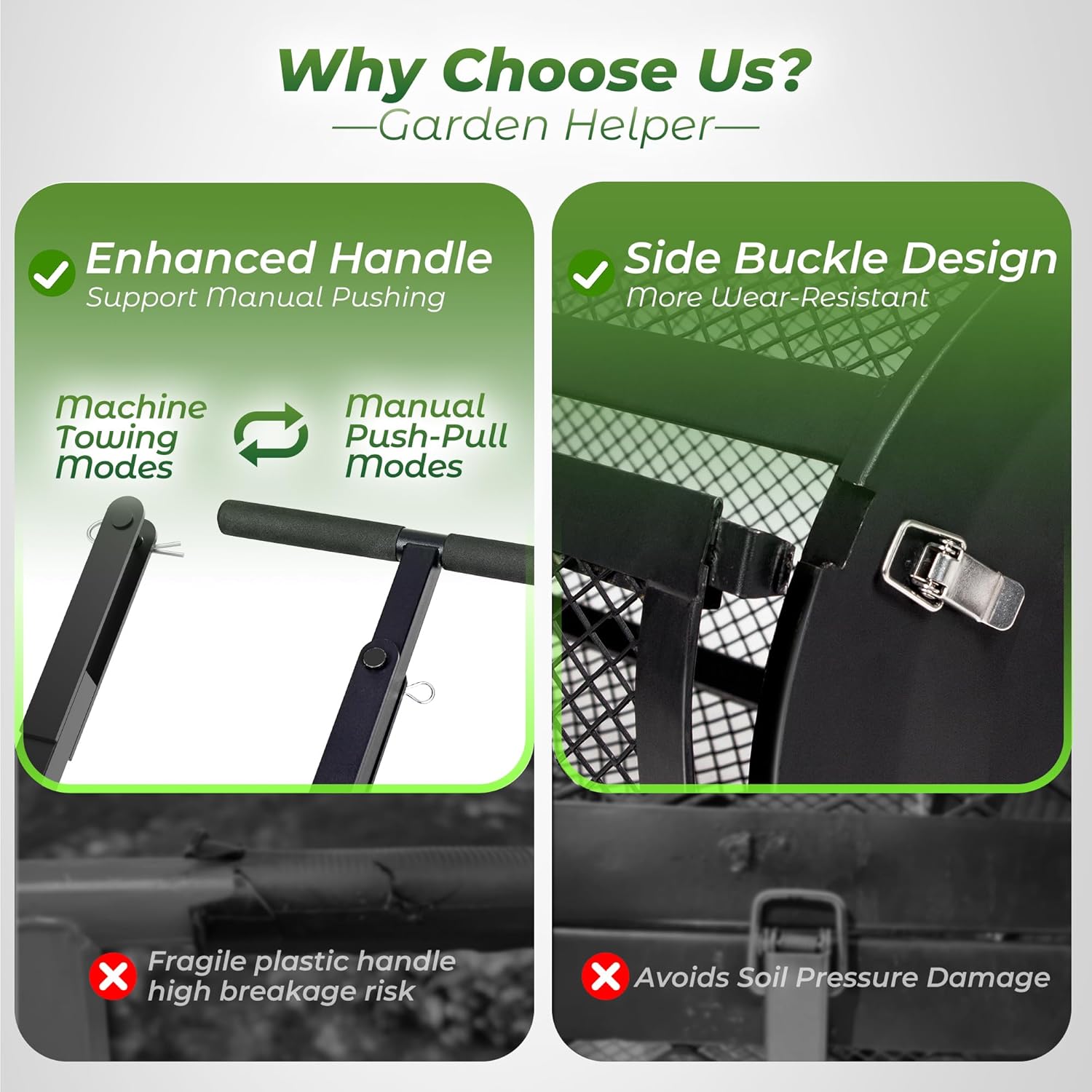 • MANUAL PUSH & TOW-BEHIND DUAL MODES: Equipped with an ergonomic T-handle for manual push/pull operation and compatible with garden machinery for tow-behind use. With the upgrade T-handle to avoid broken and makes it more durable and sturdy. Ergonomic rubber handle grips for non-slip and comfortable. Flexible functionality meets various lawn sizes and user needs—perfect for homeowners and professional landscapers alike.