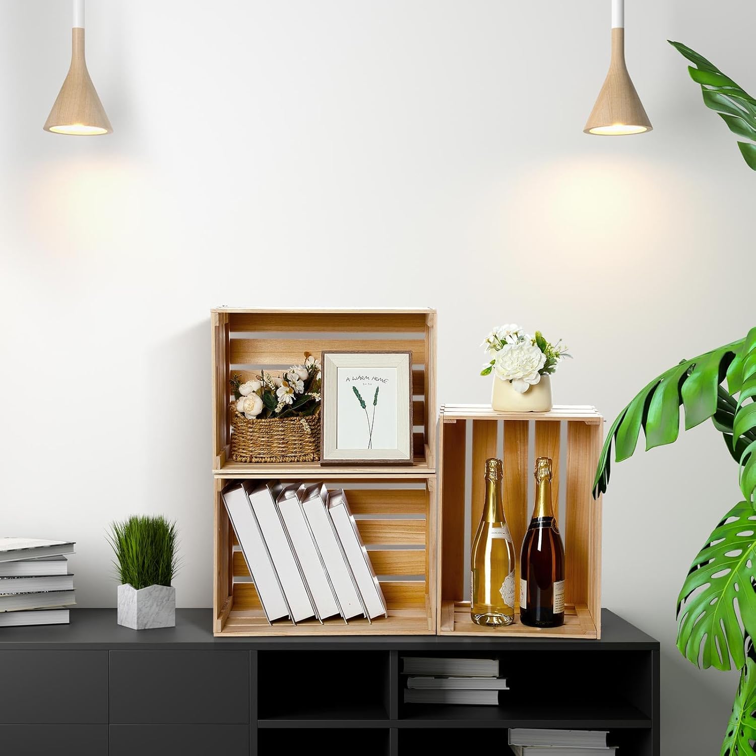 • Practical and Artistic: with their antique aesthetic, these crates bring a laid back charm to most spaces, and can be applied as a rustic side table or to form a distinctive shelving system to add a touch of personality; Use your creativity to DIY, add personalization to your space by painting, staining or decorating, making the wooden box more distinctive