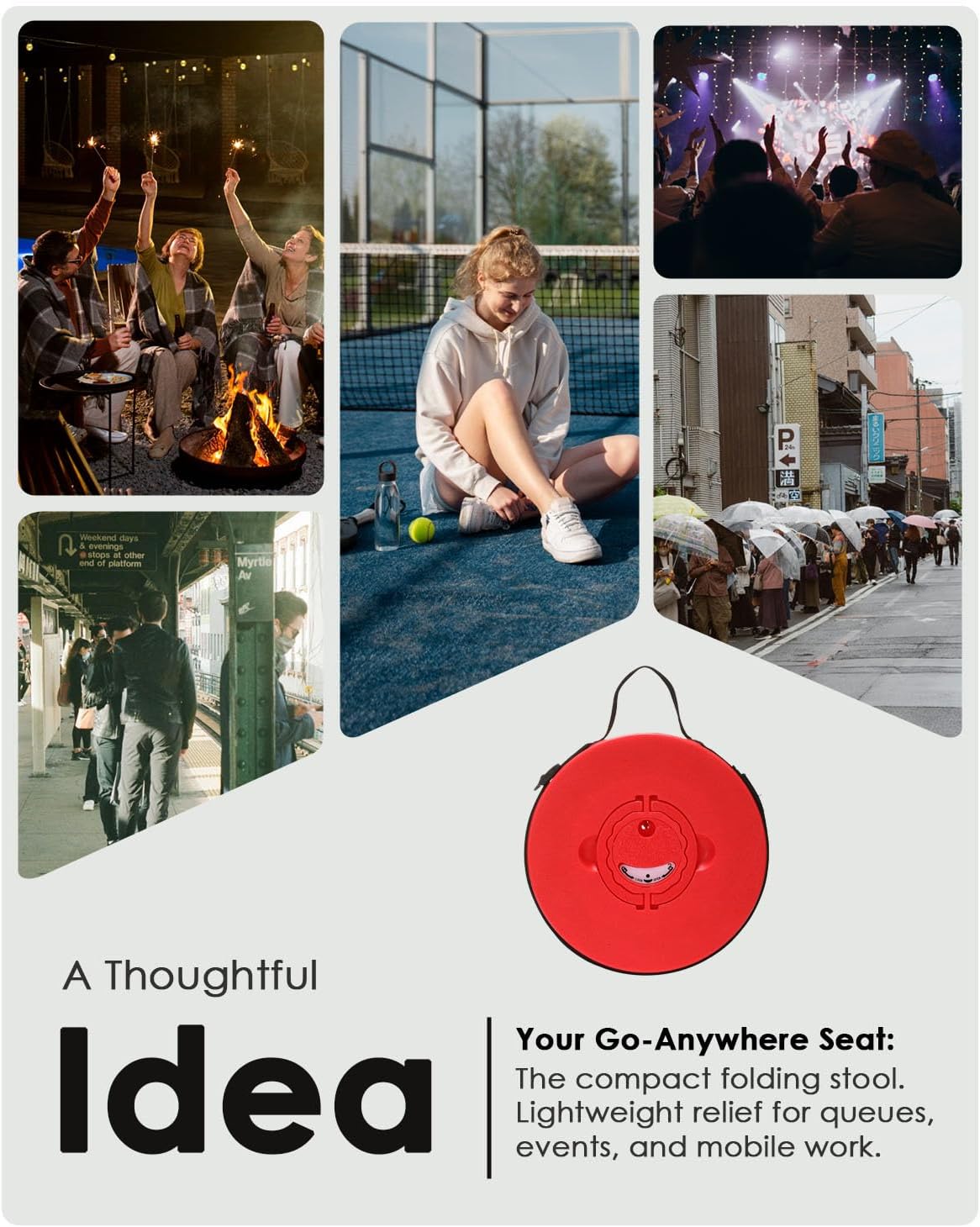 • MULTI-SCENARIO PORTABLE STOOL FOR ADULTS – Ideal collapsible stools for adults at camping trips, sports events, concerts, long queues, garden parties, RV travels, and as an temporary seat.