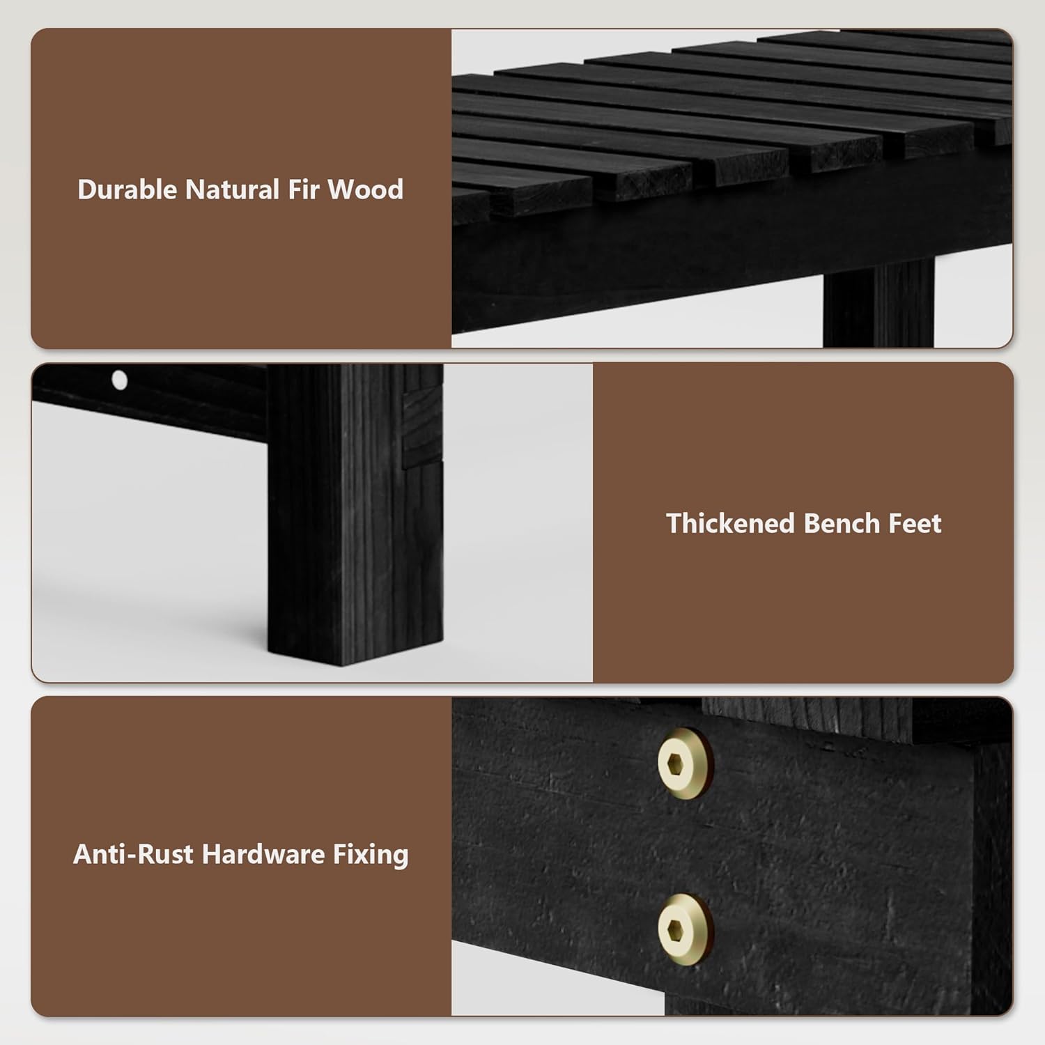 • STRONG LOAD-BEARING - Crafted from cedar wood treated with 300°C high-temperature carbonization, this garden bench resists deformation and corrosion. Thickened planks and rust-proof screws ensure a weight capacity of 330 lbs(35.5")/400 lbs(47.2"), comfortably seating two/three people