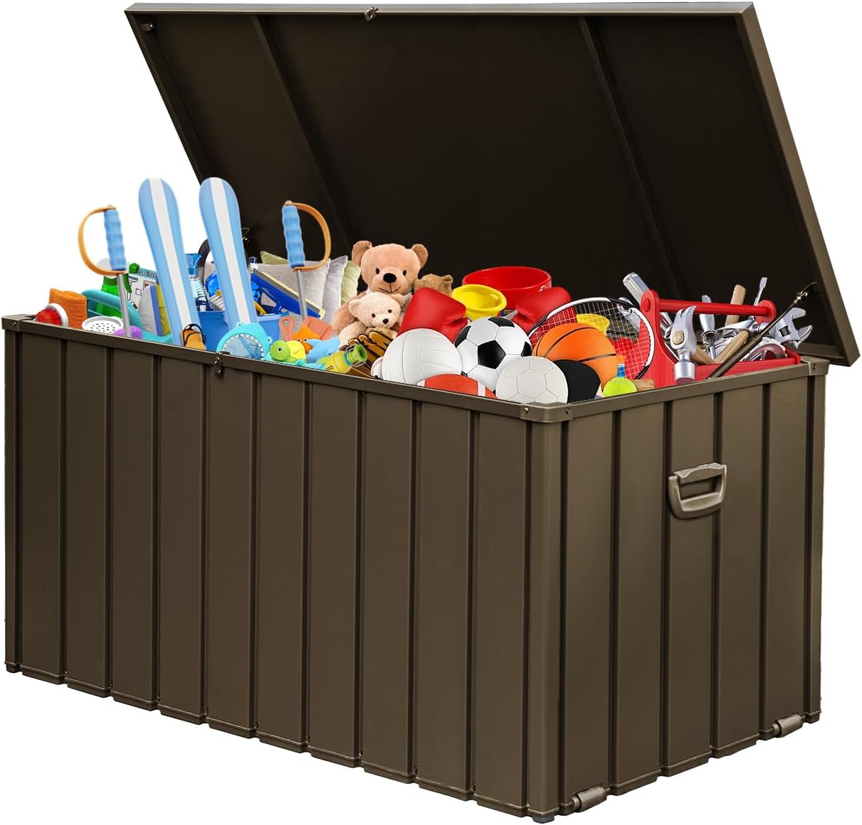 • 200-Gallon Storage Capacity – This spacious outdoor storage box provides ample 150-gallon storage, ideal for cushions, garden tools, sports gear, and more—helping you keep your outdoor area neat and clutter-free.