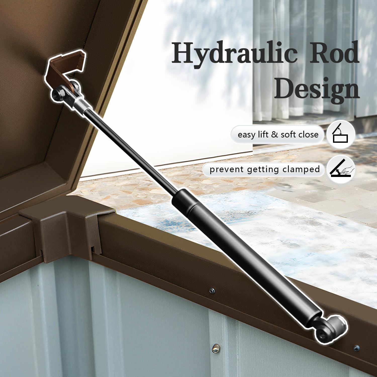 • Smooth Hydraulic Lid – Two hydraulic air rods ensure effortless opening and gentle, controlled closing, reducing the risk of pinched fingers for safe and hassle-free use.