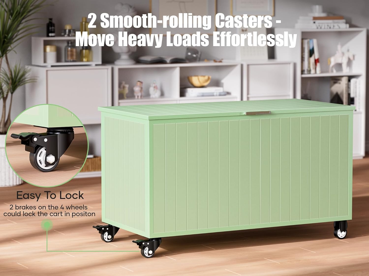 • Wheeled Storage Design: The Deck Box features wheeled storage, offering convenient mobility. This thoughtful design allows you to easily move the storage box around your outdoor space, making it convenient to access whether you are indoors or outdoors.