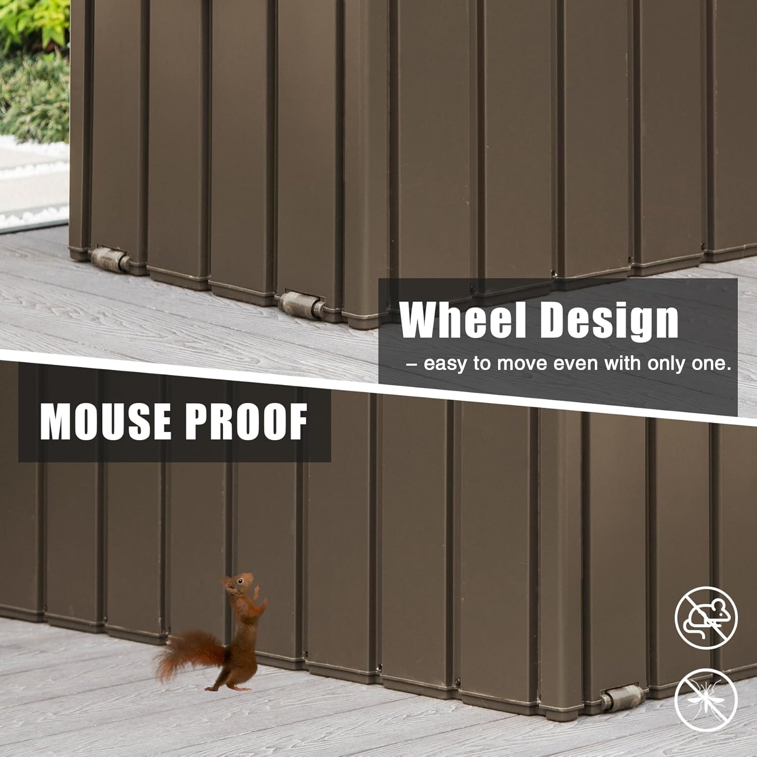 • 🌞【Water Proof & Mouse Proof】: This patio storage box is designed to close hermetically with sturdy construction that can keep out mice and squirrels. The surface is waterproof, no worry about rain or water will erode the storage box.