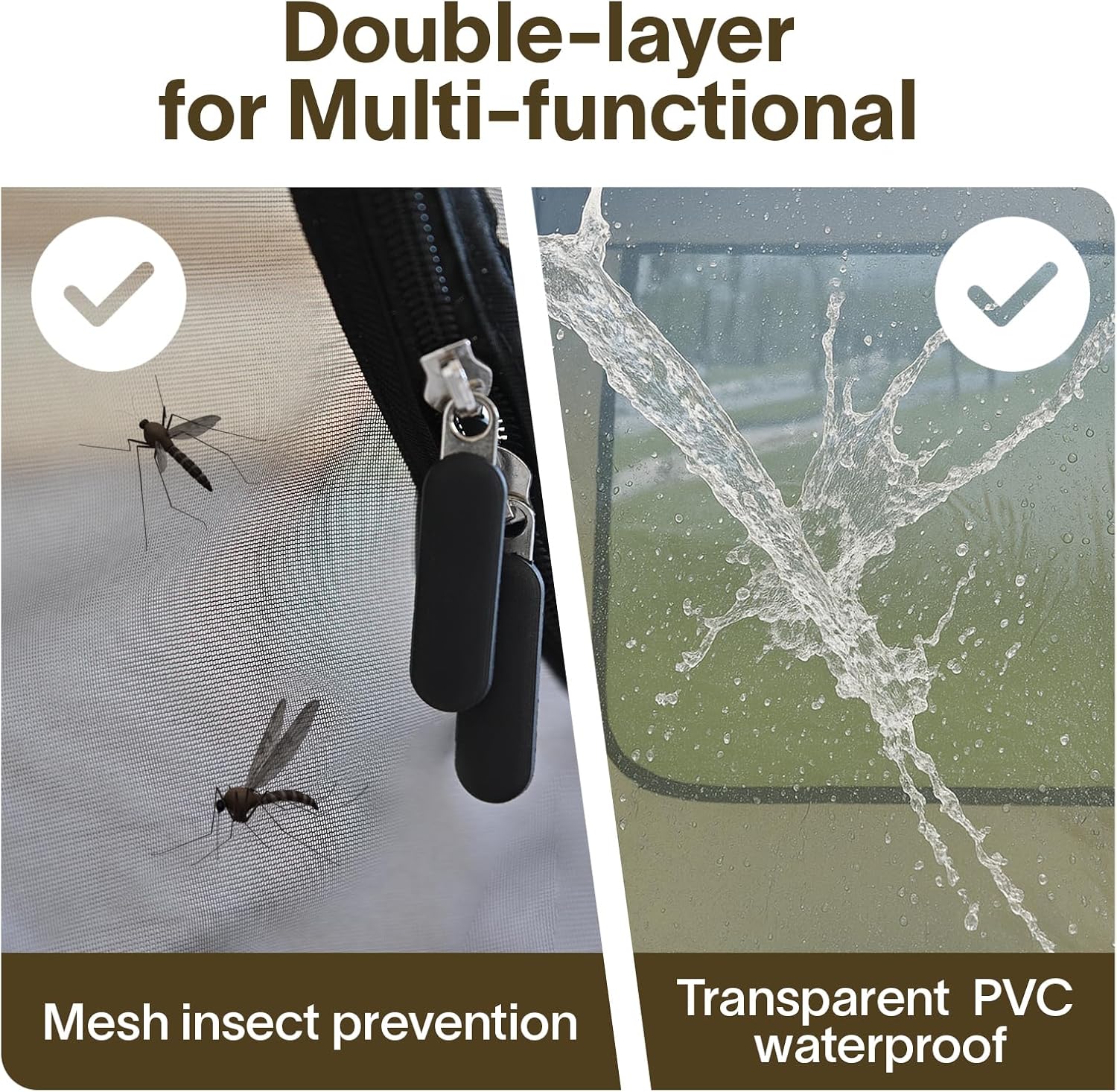 • All-Weather Ready: Built for all four seasons, this pop up tent shields you from rain, wind, and insects. Use the mosquito-proof mesh for breezy backyard lounging or rely on the waterproof PVC layer for storm protection—versatility meets durability. And the built-in fabric side doubles as a sunshade sail—no extra purchase needed! Block sunlight, prevent sunburn, and enjoy added privacy.