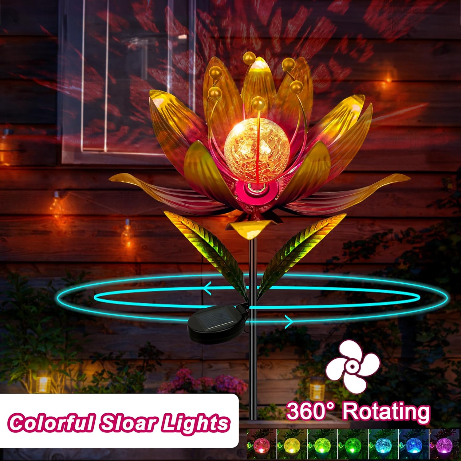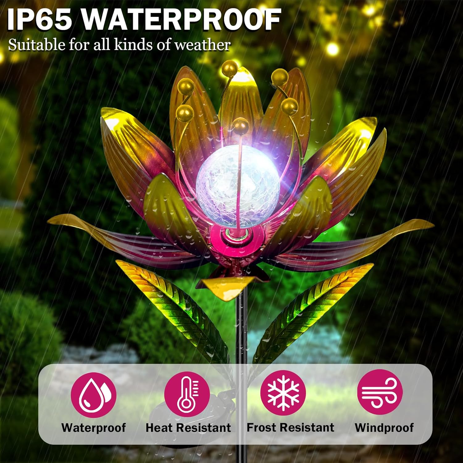 • 【 Colorful Wind Spinner 】Designed according to the shape of lotus flower, wind spinners outdoor is made of sturdy metal structure and exquisite welding technology. The surface is coated with rust-resistant graphic layer, which can prevent the metal from rusting and fading.