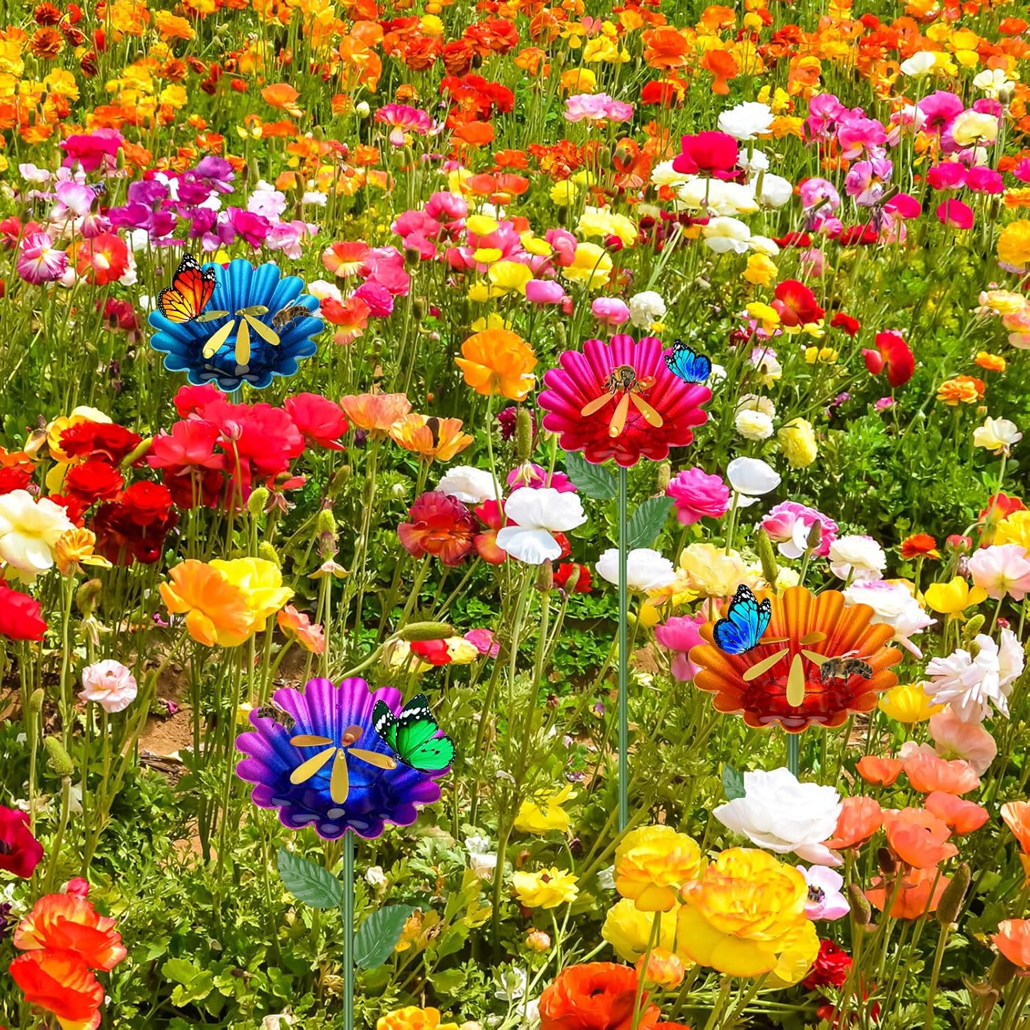 Geelin 4 Pack Bee Watering Station for Garden Metal Bee Water Cups with 5 Stamens Flower Design Water Feeder Colorful Butterfly Bath Bowl for Outdoor Garden Yard Pollinator Decor