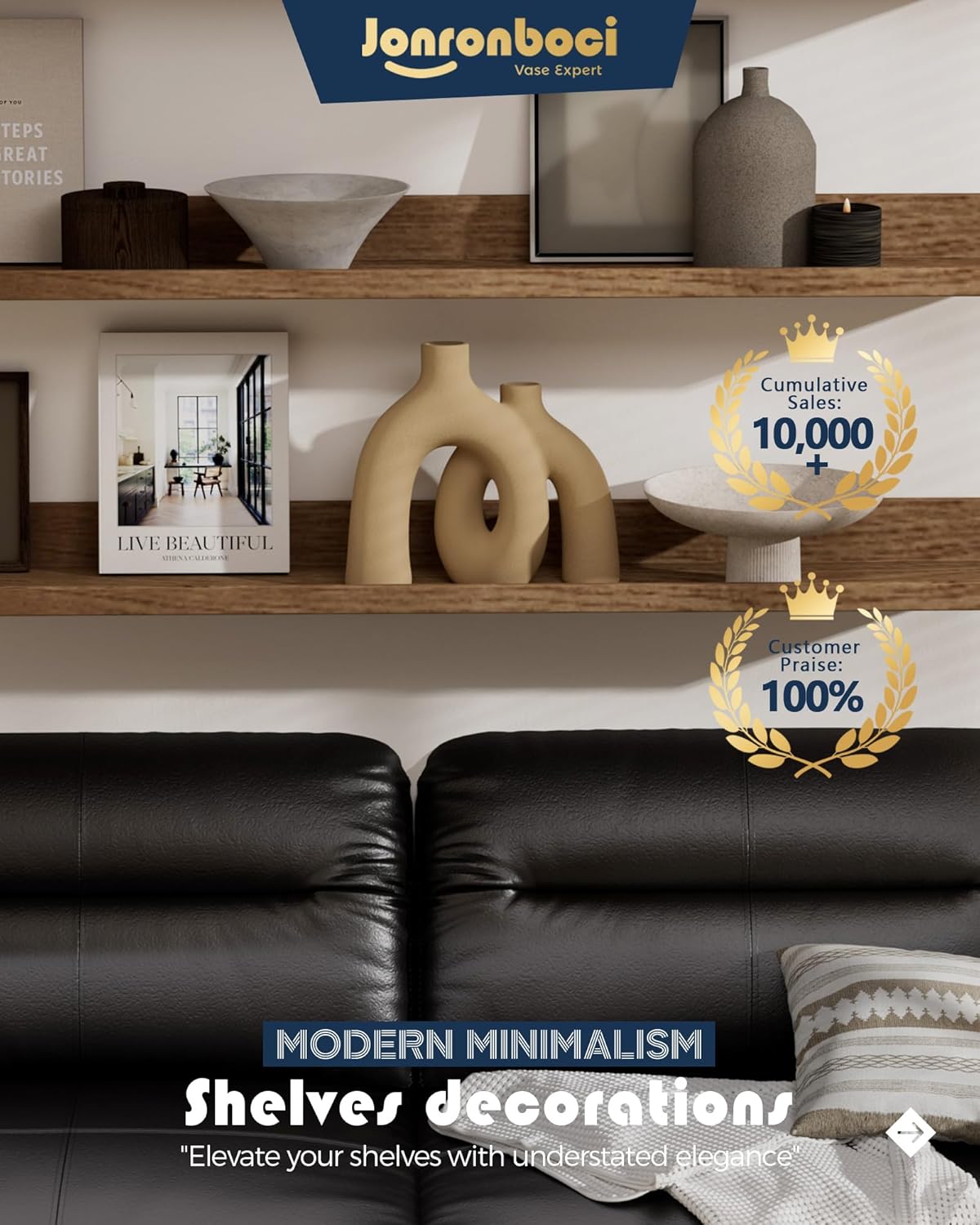 Hug Donut Decorative Vase Set - Tan Modern Rustic Farmhouse Style Vases Home Decor,Matte Ceramic Decorations for Living Room Shelf, Bookshelf Mantle Entryway Table Centerpiece or Console Décor(Brown)