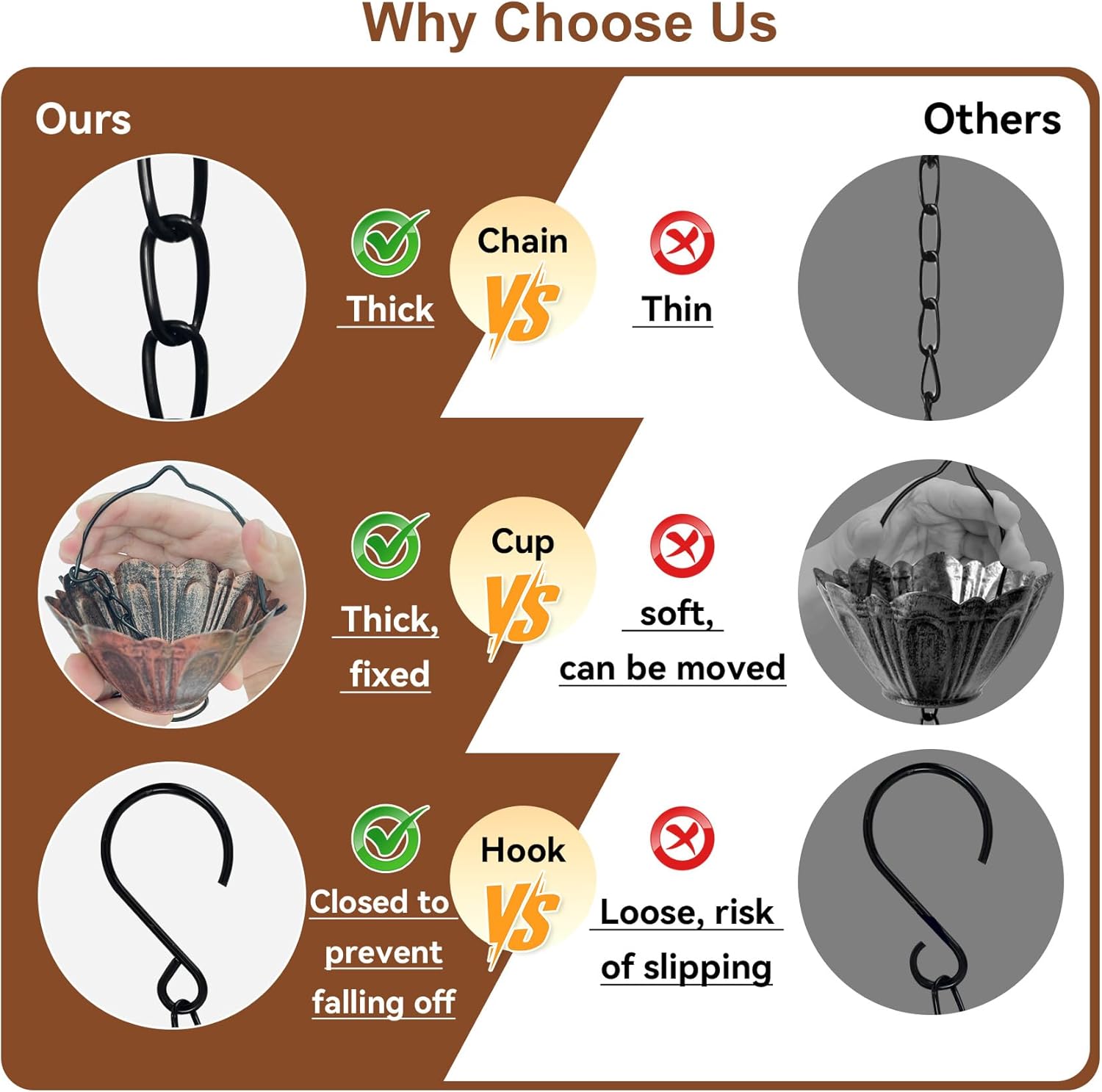 • Rust-Resistant and All-Weather Durable: Made from weather-resistant metal with anti-rust coating, this gutter rain chain withstands rain, snow, and seasonal changes; Easy to clean and low maintenance—ideal for long-term outdoor use