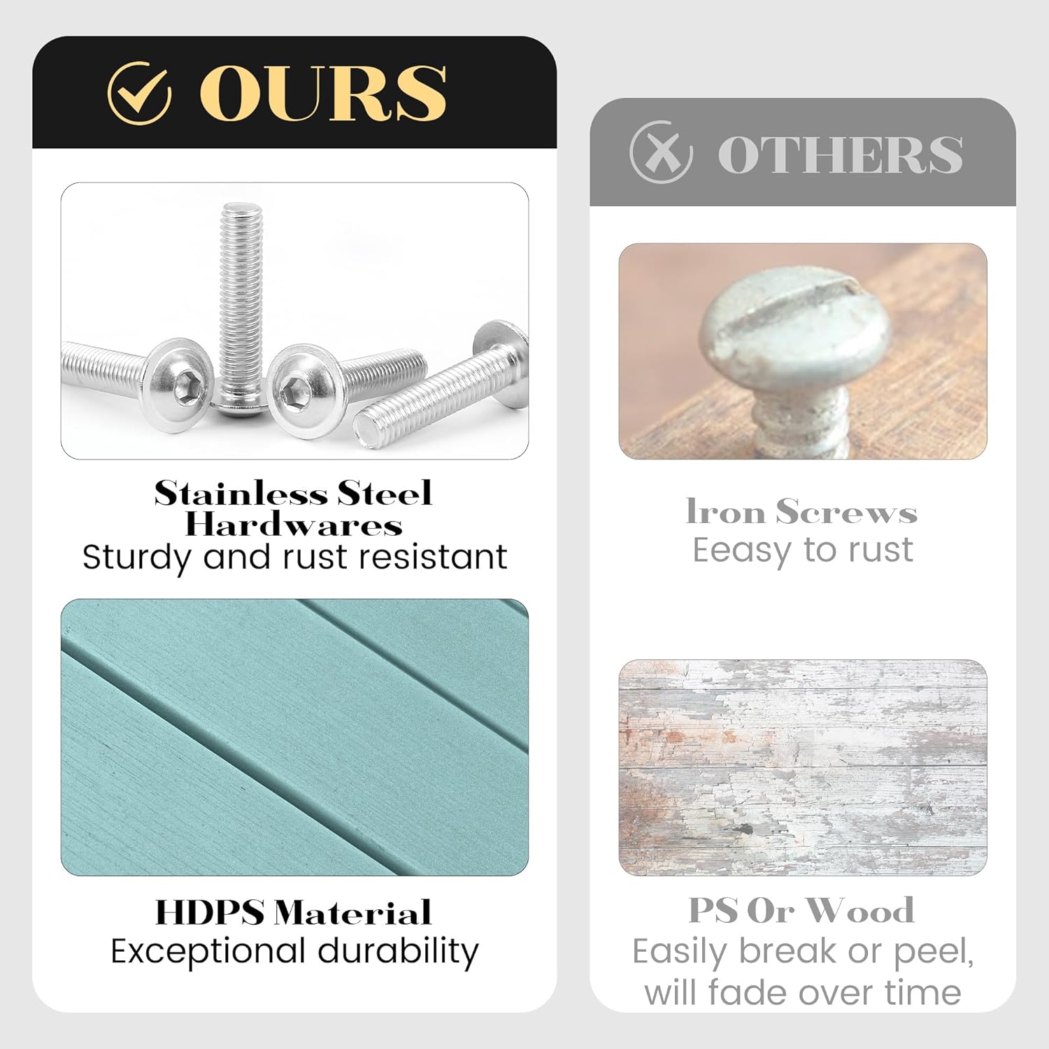• 【Low Maintenance Costs】: Effortless to clean—just use soap, water, a sanding sponge, or a soft brush. No painting, staining, or waterproofing needed, saving you time and upkeep costs.