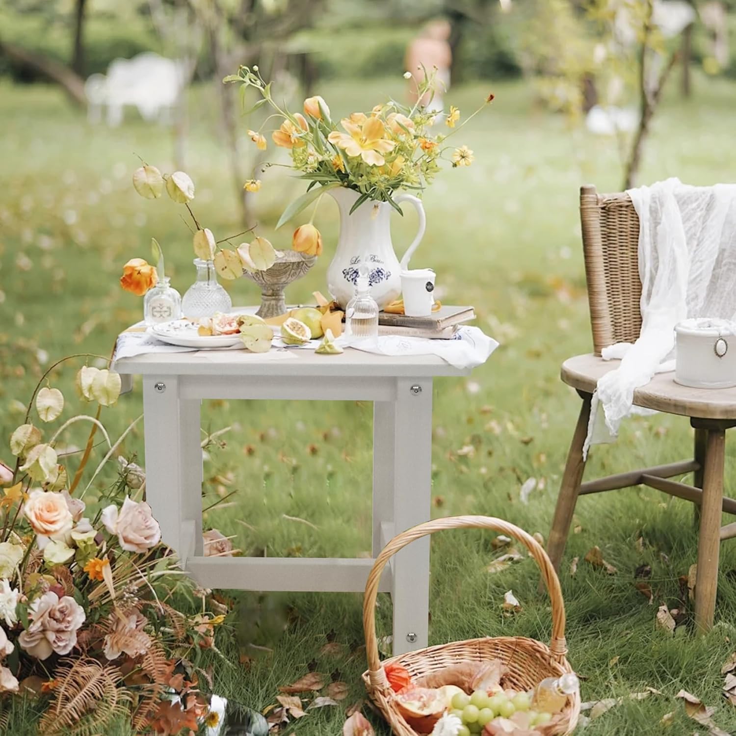 Outdoor Side Table, Small Adirondack Side Table for Adirondack Chair - Indoor Outdoor End Table - HDPS (White)