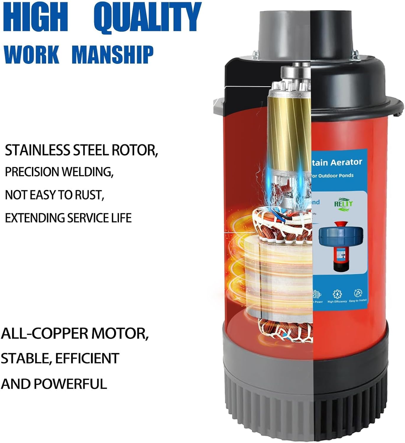 • Wide Range Of Applications: This Pond Fountain Aerator comes with a 12-gauge, 100-foot submersible electric power cord and two 100-foot guide ropes, making it suitable for both small and large ponds and lakes. Whether you have a backyard pond or a large lake, our aerator can enhance the beauty and health of your water feature
