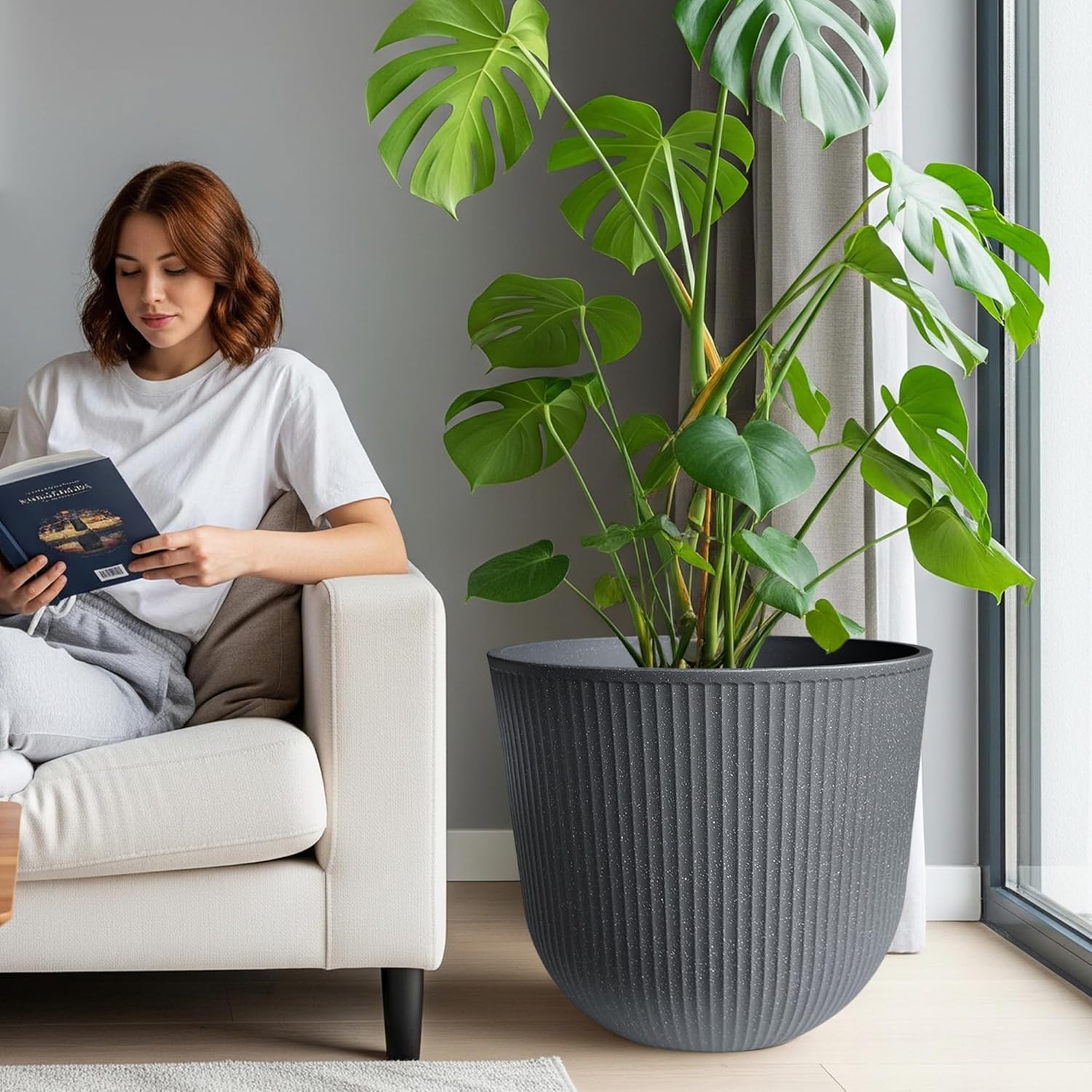 • Large Size for Trees & Plants – Each planter measures 17.5 inches in diameter and 15.5 inches in height, providing ample space for medium to large indoor or outdoor plants, including small trees and shrubs.