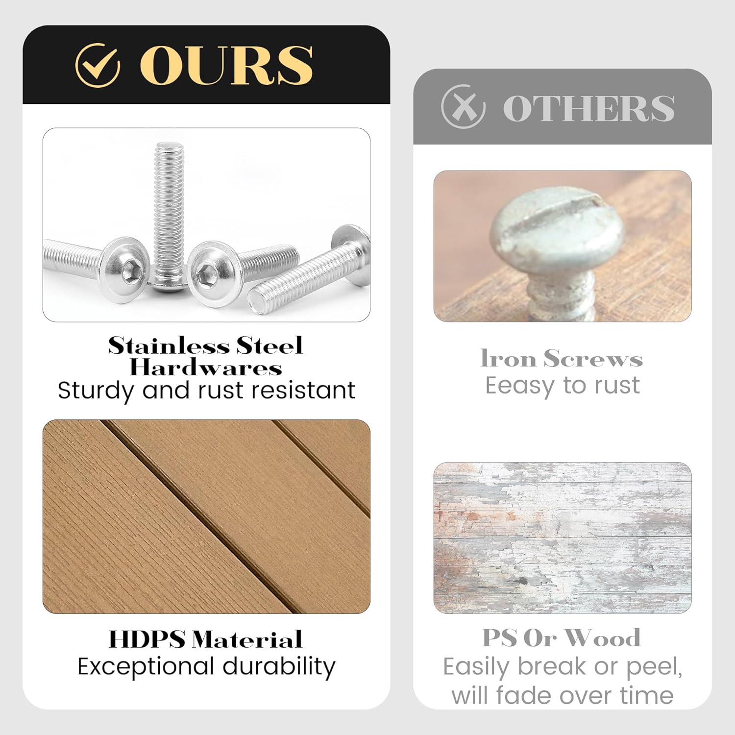 • 【Low Maintenance Costs】: Effortless to clean—just use soap, water, a sanding sponge, or a soft brush. No painting, staining, or waterproofing needed, saving you time and upkeep costs.
