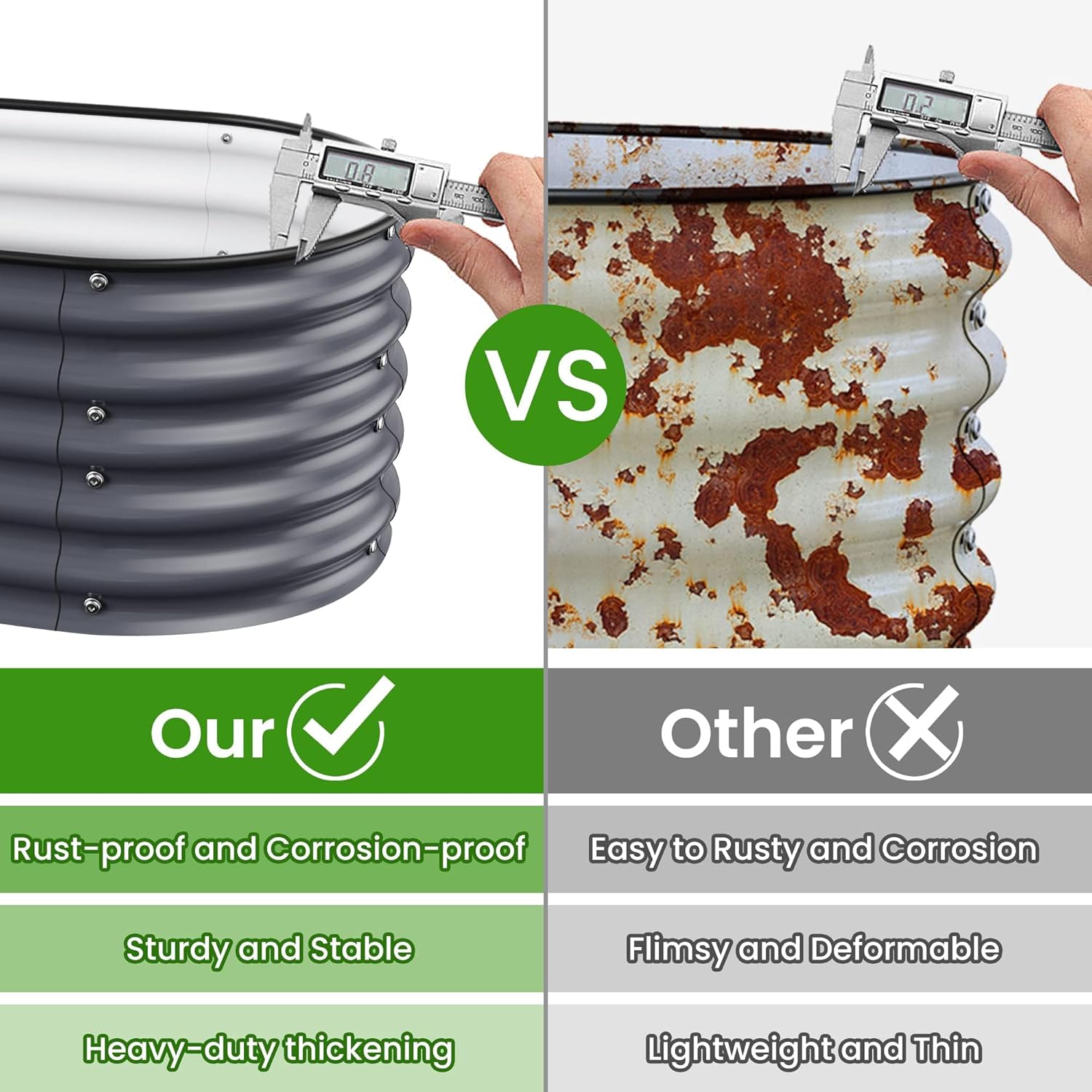 • Long-Lasting Quality:The garden beds are made of zinc aluminum-magnesium steel for durability. This advanced material is more resistant to corrosion and rust than traditional galvanized materials. Lasts 2-6 times longer than traditional galvanized raised beds, far longer than wood raised garden bed.