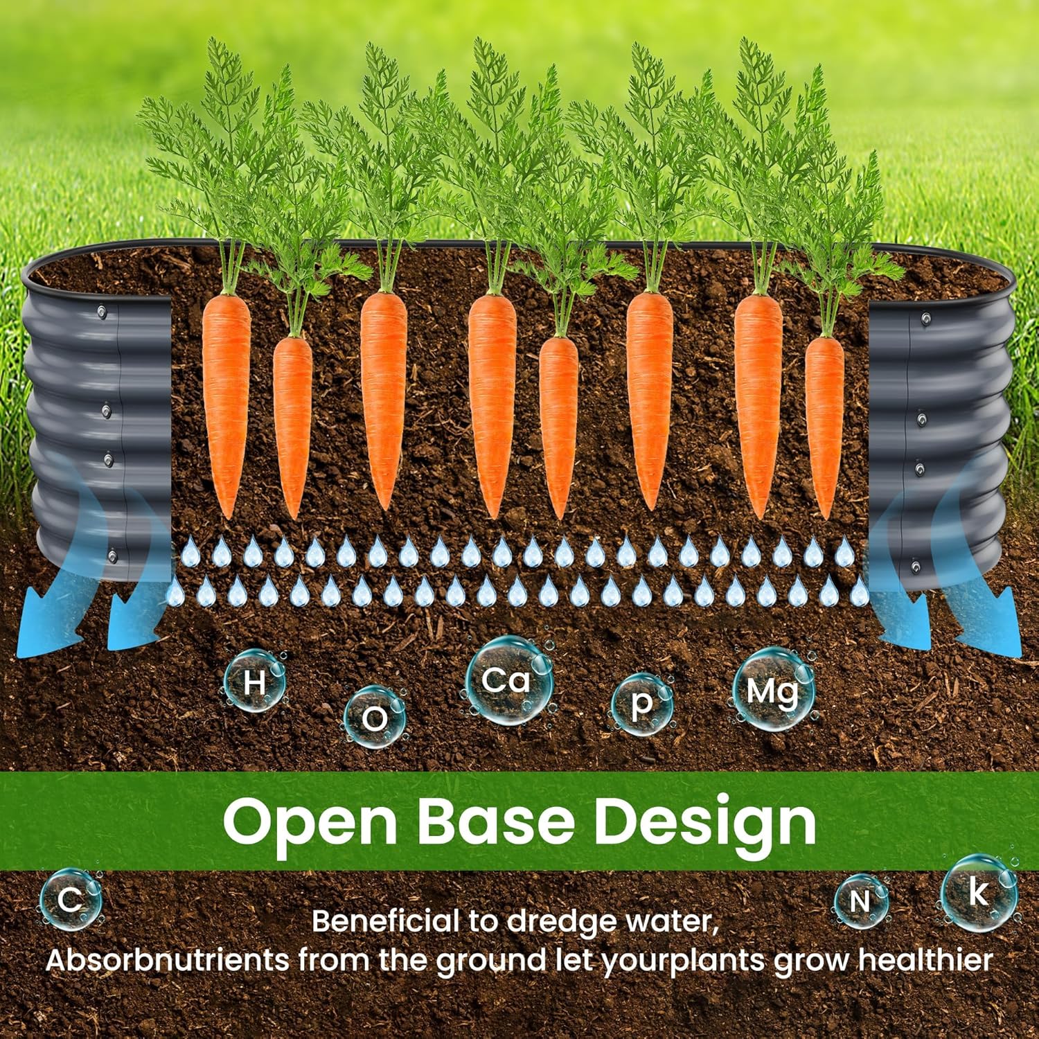 • Open Base Design:This metal raised garden bed is designed with an open base, makes this the perfect space to layer yard waste,grass clippings, fruits/veggies, or coffee grounds, to create enriched soil in your own backyard,It allow the roots absorb better nutrients, providing good drainage, and protect your plants.