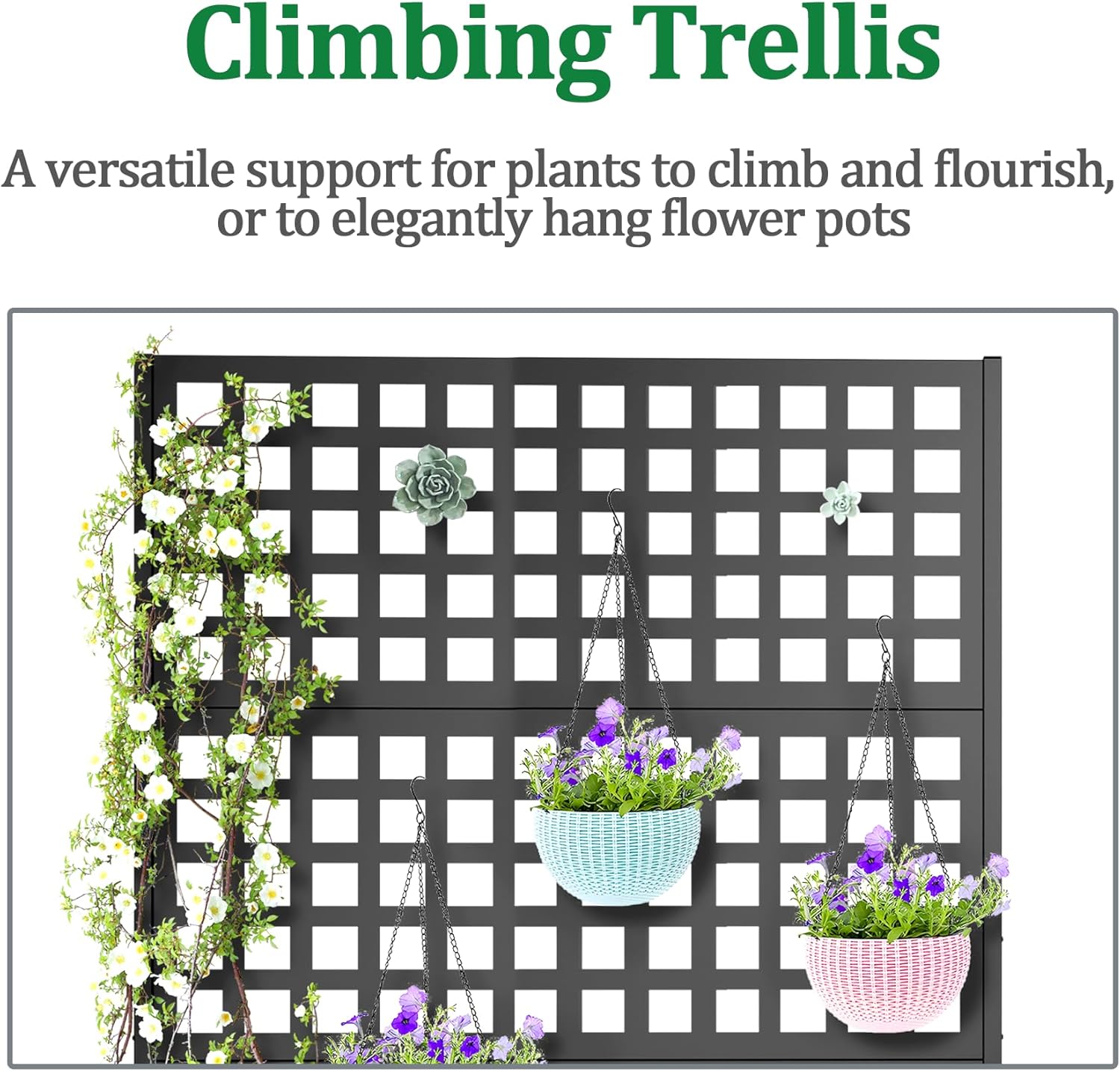Metal Raised Garden Bed with Trellis, 2 in 1 Trellis with Planter Box & Privacy Screen for Climbing Plants, Vine, Outdoor Standing Flower Beds with Drainage Holes, 47.2"L x 16.7"W x 70.8"H, Black