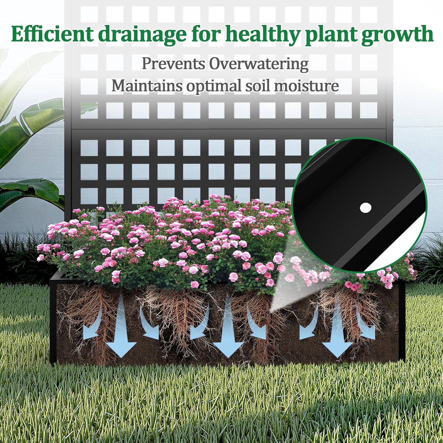 • Optimal Water Management: The planter with trellis features a deep planting bed, offering generous space for healthy root development. The raised garden bed also comes with built-in drainage holes that efficiently prevent water accumulation, helping your plants maintain proper moisture levels for optimal growth.