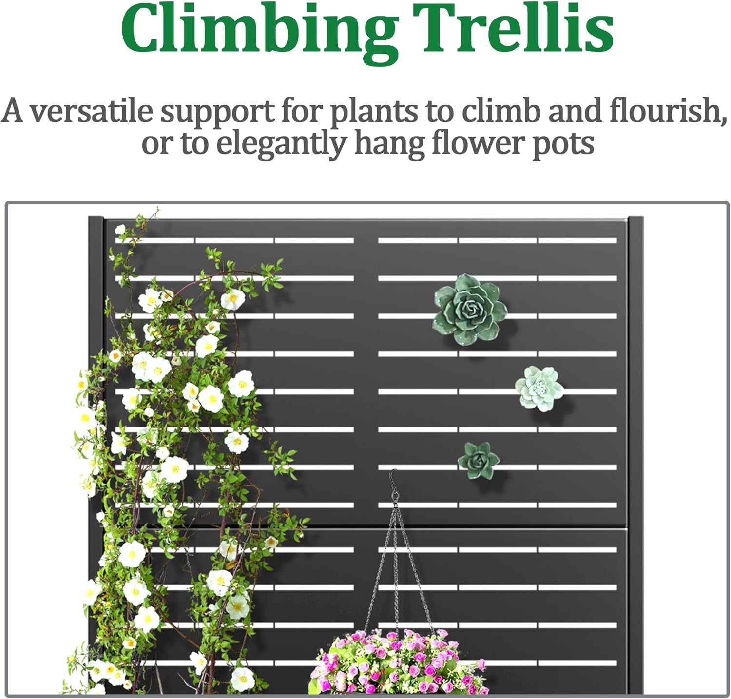 Metal Raised Garden Bed with Trellis, 2 in 1 Trellis with Planter Box & Privacy Screen for Climbing Plants, Vine, Outdoor Standing Flower Beds with Drainage Holes, 35.4"L x 15.7"W x 70.9"H, Black