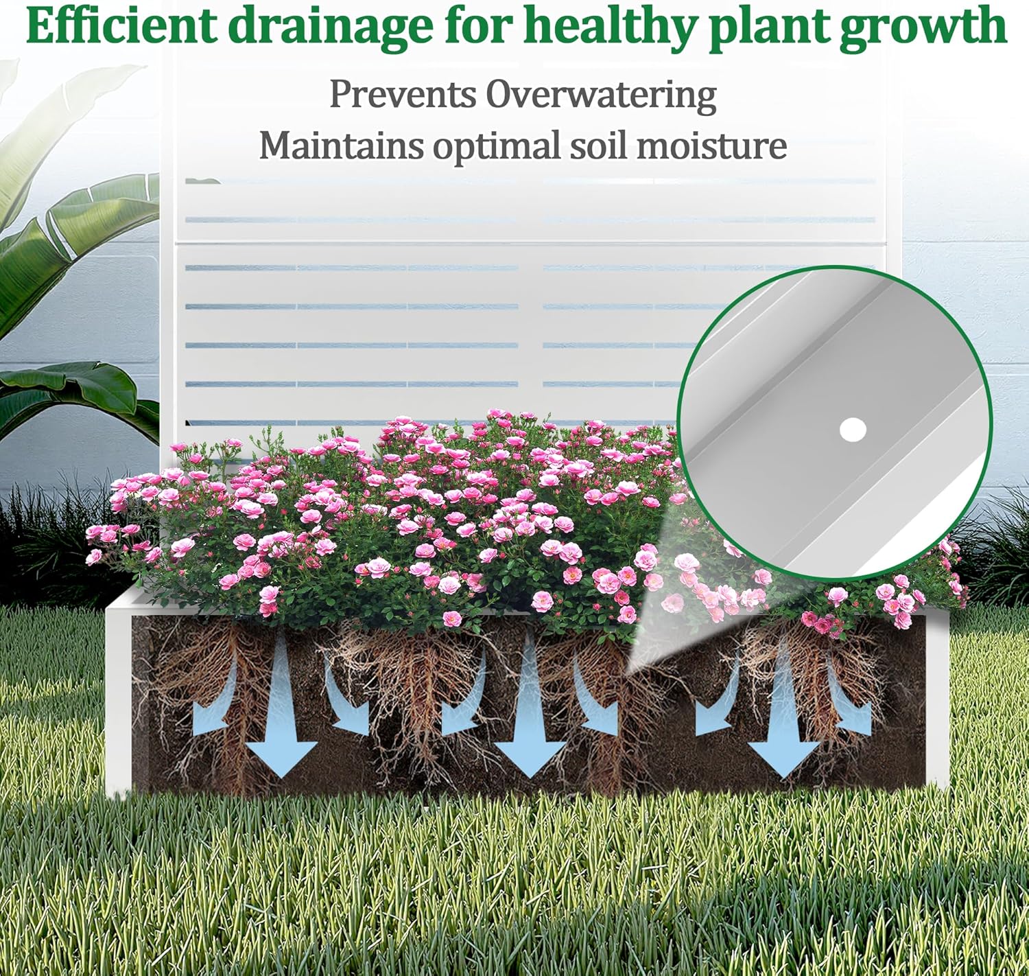 • Optimal Water Management: The planter with trellis features a deep planting bed, offering generous space for healthy root development. The raised garden bed also comes with built-in drainage holes that efficiently prevent water accumulation, helping your plants maintain proper moisture levels for optimal growth.