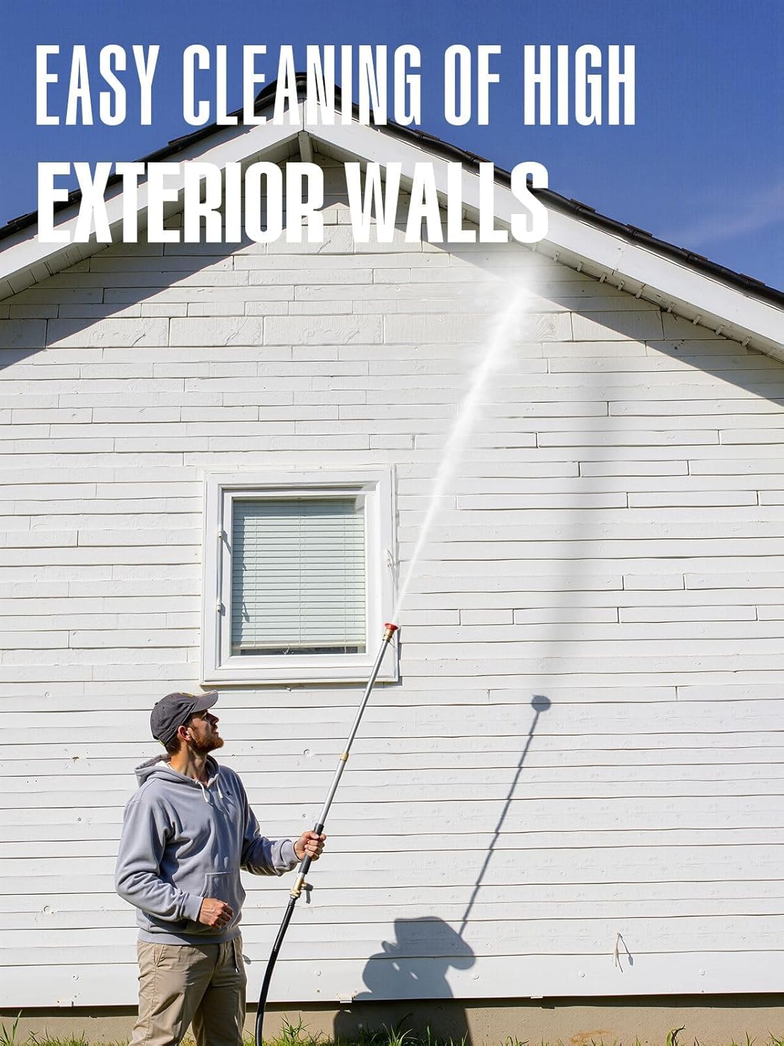 • FREE EXTENSION: The garden hose pressure nozzle is adjustable from 18 inches to 33 inches, Power Washer Extension Wands adjustment without disassembly, easy to deal with high walls, windows or low corners, cleaning without dead ends