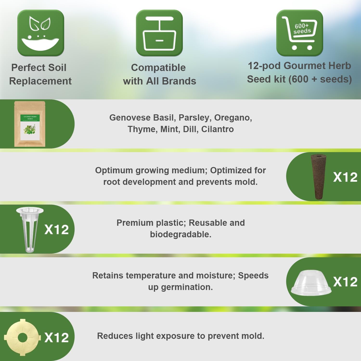 Gourmet Herb Seed Pod Kit for AeroGarden, idoo, Ahopegarden, MUFGA with Basil, Parsley, Thyme, Mint, Cilantro, Dill, Oregano - Compatible with All Hydroponics (7-Pod)