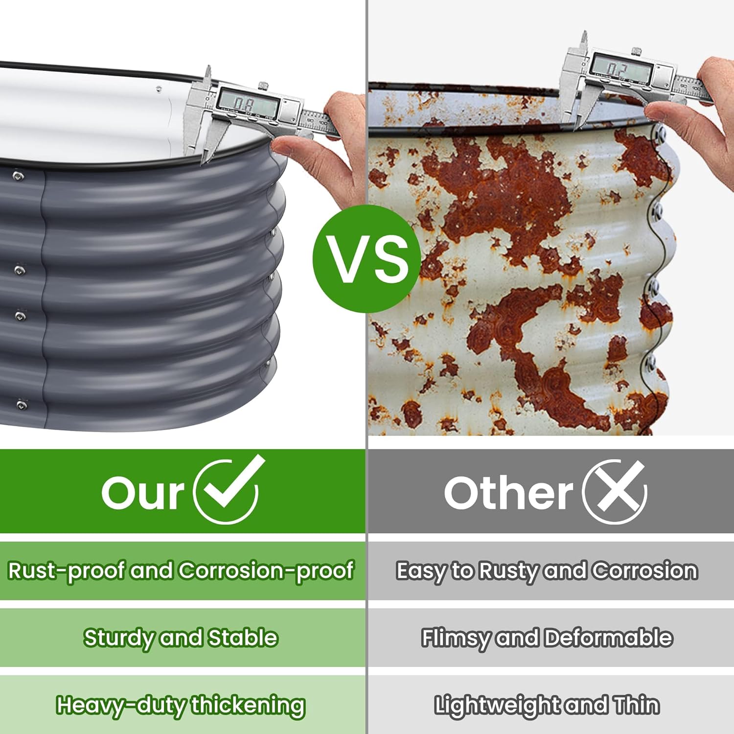 • Safety and Eco Friendly: We use USDA-approved paint that is 100% safe and eco friendly,so you can use our products with peace of mind.Plus,Our garden bed features an oval design that eliminates sharp corners and is covered with heavy-duty rubber edging to prevent injuries.